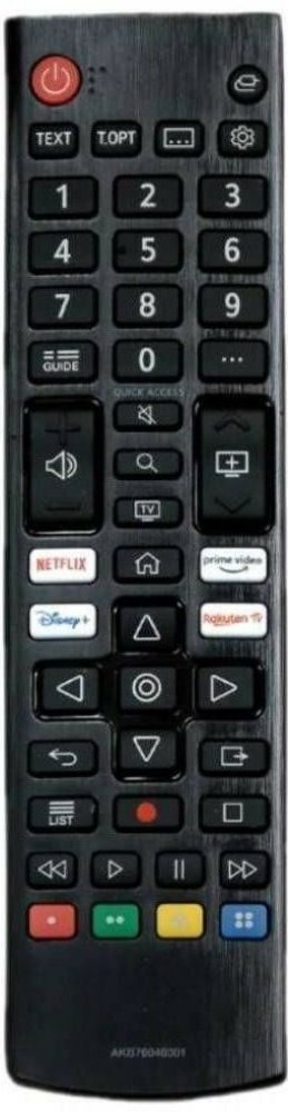Náhradní dálkový ovladač LG AKB76040301 je plnohodnotná náhrada za originální ovladač používaný u celé řady televizorů LG. Je určen pro modely 24TQ510S‑PZ, 27TQ615S, 27TQ625S, 28LQ515S, 28LQ525S, 28TO515S‑WZ, 28TQ525S, 32LM577BPUA, 32LM627BPUA, 32LQ570B6LA, 32LQ63006LA, 32LQ630B6LA, 32LQ631C0ZA, 43UP7000PUA, 43UP8000PUR, 43UQ75003LE, 43UQ75006LF, 50UP8000PUR, 55UP8000PUR, 60UP8000PUR, 65UP8000PUR, 70UP8070PUR, 75UP8070PUR, LQ63, LQ63006. Nemusí zde být uvedeny všechny kompatibilní modely. Pokud si nejste jistí, sdělte nám prosím přesný model TV a kompatibilitu obratem ověříme. Ovladač nevyžaduje žádné nastavování – stačí vložit baterie a okamžitě funguje.