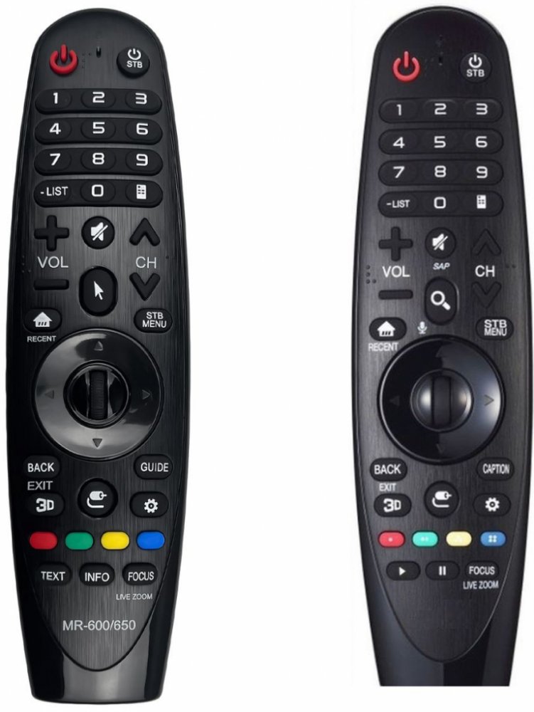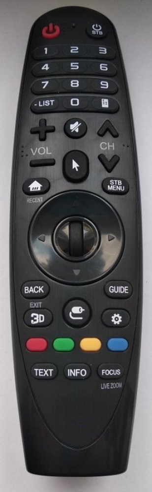 Náhradní magický rádiový (RF) dálkový ovladač LG AN-MR650, AKB74896401, AKB74855401 (ANMR650, AKB74896401, AKB74855401). Dálkový ovladač je určen pro tyto modely LG: 32LG610V, 43LH590V, 43LH6047, 43UH603V, 43UH6100-UH, 43UH620V, 43UH6500, 43UH6500-UB, 43UH6507, 43UH661V, 43UH668V, 43UH7500, 43UH7500-UA, 46UH603V, 49LF590V, 49LH602V, 49UH6030, 49UH603V, 49UH6090, 49UH6090-UF, 49UH6100, 49UH6100-UH, 49UH610A, 49UH610A-UJ, 49UH610V, 49UH620V, 49UH6500, 49UH6500-UB, 49UH6507, 49UH652T, 49UH661V, 49UH664V, 49UH668V, 49UH7500, 49UH7500-UA, 49UH7700, 49UH7700-UB, 49UH7707, 49UH850V, 50UH6300, 50UH6300-UA, 55UH600V, 55UH605V, 55UH6090, 55UH6090-UF, 55UH6150, 55UH6150-UB, 55UH6157, 55UH615A, 55UH615A-UC, 55UH6257, 55UH625V, 55UH6507, 55UH6550, 55UH6550-UB, 55UH661V, 55UH668V, 55UH7500, 55UH7500-UA, 55UH7700, 55UH7700-UB, 55UH8500, 55UH8500-UA, 55UH8507, 55UH850V, 55UH950V, 58UH6300, 58UH6300-UA, 58UH635V, 60UH6035, 60UH605V, 60UH6150, 60UH6150-UB, 60UH615A, 60UH615A-UC, 60UH6550, 60UH6550-UB, 60UH7500, 60UH7500-UA, 60UH7700, 60UH7700-UB, 60UH8500, 60UH8500-UA, 60UH8507, 65UH6150, 65UH6150-UB, 65UH6157, 65UH615A, 65UH615A-UC, 65UH6550, 65UH6550-UB, 65UH664V, 65UH7500, 65UH7500-UA, 65UH7700, 65UH7700-UB, 65UH7707, 65UH8500, 65UH8500-UA, 65UH8507, 65UH9500, 65UH9500-UA, 70UH6350, 70UH6350-UB, 75UH6550, 75UH6550-UB, 75UH8500, 75UH8500-UA, 75UH855V, 86UH9500, 86UH9500-UA, 86UH955V, 98UH9800, 98UH9800-UA, LH570V, LH590V, LH604V, OLED B6, OLED C6, OLED E6, OLED G6, OLED55B6J, OLED55C6V, OLED65B6J, OLED65C6V, OLEDB6, OLEDC6, OLEDE6, OLEDG6, UH603V, UH605V, UH610V, UH6157, UH615V, UH6207, UH620V, UH625V, UH63, UH6300, UH630V, UH6330, UH6350, UH635V, UH65, UH6500, UH6507, UH650V, UH6550, UH66, UH661V, UH668V, UH75, UH750V, UH77, UH7700, UH7707, UH7707, 65UH7707, UH85, UH8500, UH95, UH9500, UHD. (Nemusí zde být uvedeny úplně všechny kompatibilní modely. Pokud si nejste jisti, sdělte nám svůj model (použijte online chat, e-mail, telefon), neprodleně zkontrolujeme a ověříme, zda je tento ovladač kompatibilní s Vaším přístrojem. Za poskytnutou informaci ručíme.) Jedná se o naprosto stejný dálkový ovladač jako originál. Jediný rozdíl je, že nemá logo LG (to je jediný důvod, proč je levnější). Vysoká kvalita materiálu a zpracování, naprosto bezporuchový. Všechny naše dálkové ovladače kontrolujeme a testujeme, proto garantujeme jejich spolehlivost, nadstandartně dlouhý dosah signálu a výbornou citlivost tlačítek. MAGIC FUNKCE: gyroskop-ovládání pohybem tzv. létající myš, Drag a Drop. HLASOVÉ OVLÁDÁNÍ: NE Náhradní ovladač nemá hlasové ovládání, které není moc praktické, proto bylo nahrazeno užitečnější funkcí ovládání kurzoru pohybem ruky, což je výborná funkce hlavně při používání aplikací a internetu. Funguje to prostě jako myš na počítači, jen místo myše držíte v ruce ovladač a pohybujete rukou. Rychlost pohybu lze nastavit (viz přiložený návod). Proč není hlasové ovládání praktické? Srovnejte: Ovládání hlasem: Vezmu ovladač do ruky. Zmáčknu tlačítko Mikrofon. Ovladač si dám max. 10 cm k ústům (jinak to opravdu nefunguje kvůli vnějšímu rušen?-z televizoru hraje zvuk). Něco (často nutno ANGLICKY) řeknu. Doufám že televizor rozuměl, pokud ne tak od bodu č. 2 znovu. Ovládání normální tlačítky: Vezmu ovladač do ruky. Zmáčknu na ovladači tlačítko požadované funkce. Televizor provede povel. JEDNODUCHÉ ZPROVOZNĚNÍ: USB adaptér je součástí balení. Po vložení USB donglu do televizoru je potřeba dálkový ovladač ještě spárovat. Ovladač se spáruje s televizorem úplně stejně jako původní originální ovladač (zmáčknutím a podržením "KOLEČKO (OK)" po dobu 5 sekund).