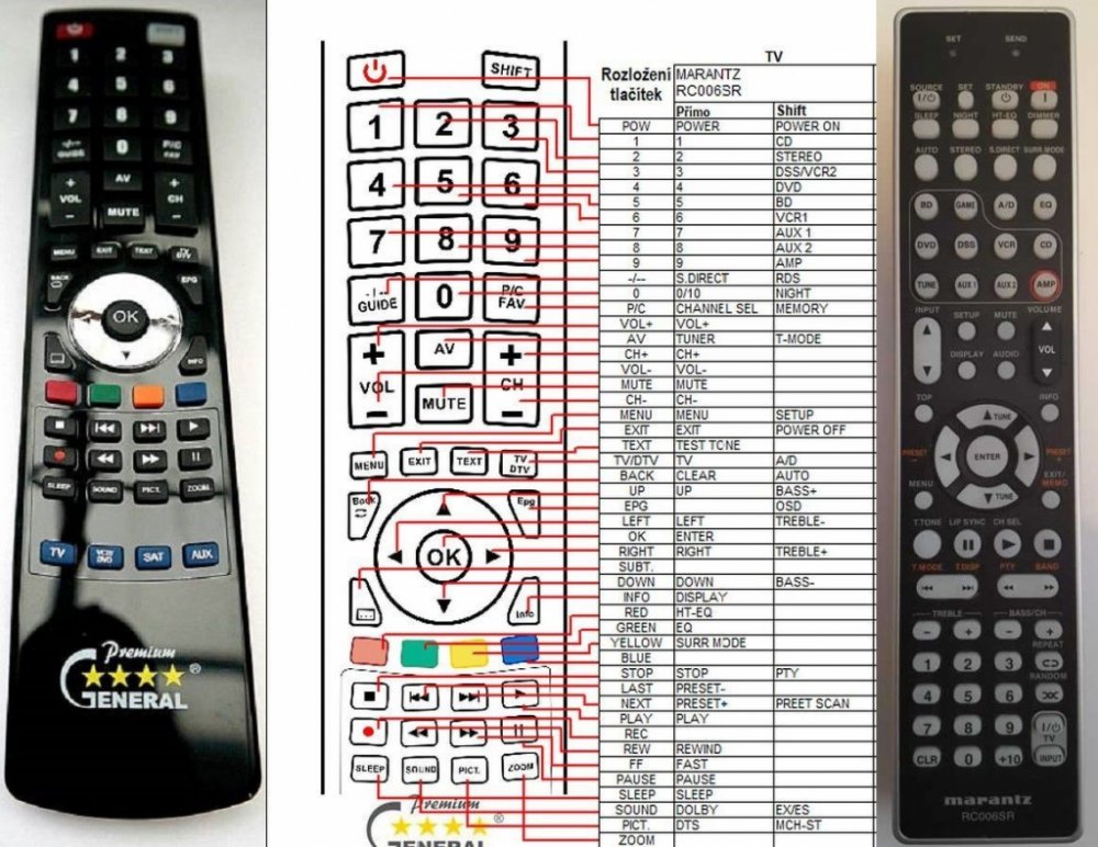Dálkový ovladač MARANTZ RC006SR duplikát 1:1 originálního dálkového ovladače. Dálkový ovladač je určen pro tyto modely MARANTZ: NR-1501, NR1501. (Nemusí zde být uvedeny úplně všechny kompatibilní modely. Pokud si nejste jisti, sdělte nám svůj model (použijte online chat, e-mail, telefon), neprodleně zkontrolujeme a ověříme, zda je tento ovladač kompatibilní s Vaším přístrojem. Za poskytnutou informaci ručíme.) Dálkový ovladač General Duremote má naprosto všechny funkce a popisky tlačítek stejné jako originální dálkový ovladač. Není třeba nic nastavovat, žádné kódy, funguje ihned po vložení baterií se všemi výše uvedenými modely. Ovladač je dodáván ve verzi značkového dálkového ovladače General Duremote (zobrazen vlevo) Jedná se o ovladač vyrobený pro specifické zařízení – NENÍ to univerzální ovladač! Má naprosto všechny funkce jako originální dálkový ovladač. Má stejné popisky tlačítek, jako jste byli zvyklí z originálu. Popisky tlačítek jsou velmi odolné a nejdou seškrábat ani hrubou silou. 2 roky záruka. General Duremote byl navržen a vyroben přesně podle originálního dálkového ovladače tlačítko po tlačítku. Ovladač je vyvinut a testován v České republice a podléhá CE a ROHS standardům. SNADNÉ INTUITIVNÍ POUŽÍVÁNÍ: Na rozdíl od běžných náhradních ovladačů, General Duremote má 100procent odpovídající popisky tlačítek jako na originálním ovladači. Srovnání: Jiné univerzální nebo programovatelné náhrady mají kvůli snížení nákladů názvy/popisky a rozložení tlačítek univerzální, popisky tlačítek často neodpovídají funkci tlačítka a vyžadují tedy návody k použití. To často vede k nejasnostem, co které tlačítko dělá a stálá potřeba manuálu je velmi obtěžující. S ovladačem General Duremote žádný návod nepotřebujete, tlačítko dělá přesně to, co symbolizuje jeho popisek. GARANTUJEME 100procent FUNKČNOST: Narozdíl od jiných náhrad je každý dálkový ovladač General Duremote přímo v naší firmě navržen a testován na míru pro konkrétní zařízení tak, aby každé tlačítko odpovídalo funkci tlačítka originálního ovladače. Díky tomu můžeme zaručit 100procent funkčnost přesně jako originální ovladač. Samotné šasi bylo navrženo a vyvíjeno tak, aby bylo co nejodolnější a nejspolehlivější. Zároveň však byl kladen důraz na přívětivé rozložení tlačítek a popisky tlačítek jsou optimalizovány pro dobrou viditelnost. Materiály a součástky byly podrobeny důkladným testům, aby odolaly i tomu nejtvrdšímu zacházení a poskytovaly tak dlouhodobou životnost. Názvy tlačítek jsou na ovladači natištěny moderní technologií v naší firmě (naše vlastní know-how). Tisk je extrémně odolný a nelze jej setřít ani oškrábat. DUPLIKÁT originálního dálkového ovladače má naprosto stejné funkce a stejné názvy tlačítek jako Váš původní originální ovladač. Nemusíte nic nastavovat, po vložení baterií bude okamžitě fungovat, ovladač je již nakonfigurován tak, aby fungoval na modely uvedené výše. Nápisy na tlačítkách přesně odpovídají funkcím tlačítek, tiskneme je přesně podle originálního ovladače. Narozdíl od všech univerzálních a programovatelných náhrad, kde jsou názvy tlačítek univerzální a pro uživatele matoucí. Popisky jsou natištěny technicky vyspělou technologií v naší provozovně (naše know-how), jsou extrémně odolné, nejdou setřít ani seškrábat (např. nehtem). Opravdu jsme schopni vyrobit jakýkoliv dálkový ovladač! Splníme i požadavky na exotické ovladače, které nejsou (zatím) v naší nabídce. DUPLIKÁT = Nejlepší poměr cena/výkon. DOPORUČUJEME! DUPLIKÁT originálního dálkového ovladače má naprosto stejné funkce a stejné názvy tlačítek jako Váš původní originální ovladač. Nemusíte nic nastavovat, po vložení baterií bude okamžitě fungovat, ovladač je již nakonfigurován tak, aby fungoval na modely uvedené níže. Nápisy na tlacitkach přesně odpovídají funkcím tlačítek, tiskneme je přesně podle oriignálního ovladače. Narozdil od všech univerzalnich a programovatelnych náhrad, kde jsou názvy tlačítek univerzální a pro uživatele matoucí. Popisky jsou natištěny technicky vyspělou technologií v naší provozovně (naše know-how), jsou extrémně odolné, nejdou setřít ani seškrábat (např.nehtem). Opravdu jsme schopni vyrobit jakýkoliv dálkový ovladač! Splníme i požadavky na exotické ovladače, které nejsou (zatím :) v naší nabídce. DUPLIKÁT = Nejlepší poměr cena/výkon. DOPORUČUJEME!