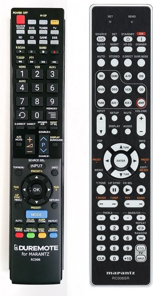 Dálkový ovladač MARANTZ RC006SR duplikát 1:1 originálního dálkového ovladače. Dálkový ovladač je určen pro tyto modely MARANTZ: NR-1501, NR1501. (Nemusí zde být uvedeny úplně všechny kompatibilní modely. Pokud si nejste jisti, sdělte nám svůj model (použijte online chat, e-mail, telefon), neprodleně zkontrolujeme a ověříme, zda je tento ovladač kompatibilní s Vaším přístrojem. Za poskytnutou infor...