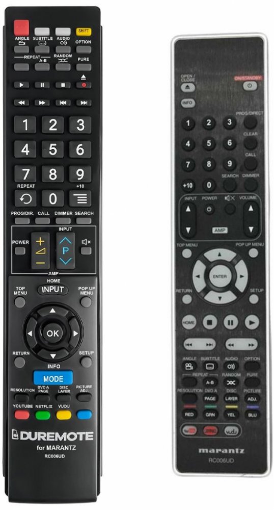 Dálkový ovladač MARANTZ RC-006UD (RC006UD) duplikát 1:1 originálního dálkového ovladače. Dálkový ovladač byl vyvinut speciálně na míru pro tyto modely značky MARANTZ:UD5007, UD7007. (Nemusí zde být uvedeny úplně všechny kompatibilní modely. Pokud si nejste jisti, sdělte nám svůj model (použijte online chat, e-mail, telefon), neprodleně zkontrolujeme a ověříme, zda je tento ovladač kompatibilní s V...