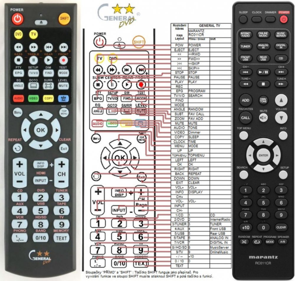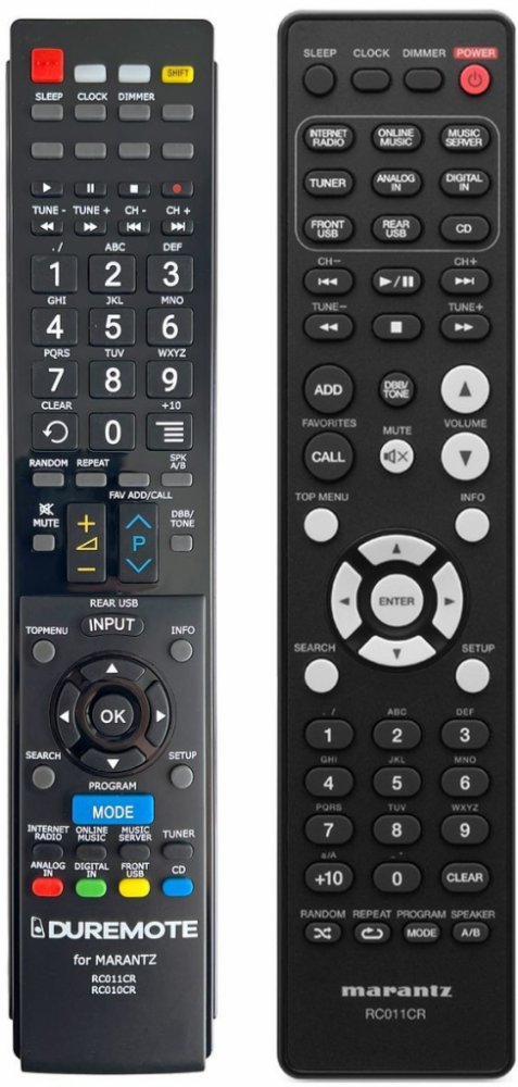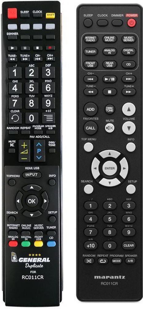 Dálkový ovladač MARANTZ RC011CR duplikát 1:1 originálního dálkového ovladače. Dálkový ovladač je určen pro tyto modely MARANTZ: M-CR610, MCR610. (Nemusí zde být uvedeny úplně všechny kompatibilní modely. Pokud si nejste jisti, sdělte nám svůj model (použijte online chat, e-mail, telefon), neprodleně zkontrolujeme a ověříme, zda je tento ovladač kompatibilní s Vaším přístrojem. Za poskytnutou informaci ručíme.) Dálkový ovladač General Duremote má naprosto všechny funkce a popisky tlačítek stejné jako originální dálkový ovladač. Není třeba nic nastavovat, žádné kódy, funguje ihned po vložení baterií se všemi výše uvedenými modely. Ovladač je dodáván ve verzi značkového dálkového ovladače General Duremote (zobrazen vlevo) Jedná se o ovladač vyrobený pro specifické zařízení – NENÍ to univerzální ovladač! Má naprosto všechny funkce jako originální dálkový ovladač. Má stejné popisky tlačítek, jako jste byli zvyklí z originálu. Popisky tlačítek jsou velmi odolné a nejdou seškrábat ani hrubou silou. 2 roky záruka. General Duremote byl navržen a vyroben přesně podle originálního dálkového ovladače tlačítko po tlačítku. Ovladač je vyvinut a testován v České republice a podléhá CE a ROHS standardům. SNADNÉ INTUITIVNÍ POUŽÍVÁNÍ: Na rozdíl od běžných náhradních ovladačů, General Duremote má 100procent odpovídající popisky tlačítek jako na originálním ovladači. Srovnání: Jiné univerzální nebo programovatelné náhrady mají kvůli snížení nákladů názvy/popisky a rozložení tlačítek univerzální, popisky tlačítek často neodpovídají funkci tlačítka a vyžadují tedy návody k použití. To často vede k nejasnostem, co které tlačítko dělá a stálá potřeba manuálu je velmi obtěžující. S ovladačem General Duremote žádný návod nepotřebujete, tlačítko dělá přesně to, co symbolizuje jeho popisek. GARANTUJEME 100procent FUNKČNOST: Narozdíl od jiných náhrad je každý dálkový ovladač General Duremote přímo v naší firmě navržen a testován na míru pro konkrétní zařízení tak, aby každé tlačítko odpovídalo funkci tlačítka originálního ovladače. Díky tomu můžeme zaručit 100procent funkčnost přesně jako originální ovladač. Samotné šasi bylo navrženo a vyvíjeno tak, aby bylo co nejodolnější a nejspolehlivější. Zároveň však byl kladen důraz na přívětivé rozložení tlačítek a popisky tlačítek jsou optimalizovány pro dobrou viditelnost. Materiály a součástky byly podrobeny důkladným testům, aby odolaly i tomu nejtvrdšímu zacházení a poskytovaly tak dlouhodobou životnost. Názvy tlačítek jsou na ovladači natištěny moderní technologií v naší firmě (naše vlastní know-how). Tisk je extrémně odolný a nelze jej setřít ani oškrábat. DUPLIKÁT originálního dálkového ovladače má naprosto stejné funkce a stejné názvy tlačítek jako Váš původní originální ovladač. Nemusíte nic nastavovat, po vložení baterií bude okamžitě fungovat, ovladač je již nakonfigurován tak, aby fungoval na modely uvedené výše. Nápisy na tlačítkách přesně odpovídají funkcím tlačítek, tiskneme je přesně podle originálního ovladače. Narozdíl od všech univerzálních a programovatelných náhrad, kde jsou názvy tlačítek univerzální a pro uživatele matoucí. Popisky jsou natištěny technicky vyspělou technologií v naší provozovně (naše know-how), jsou extrémně odolné, nejdou setřít ani seškrábat (např. nehtem). Opravdu jsme schopni vyrobit jakýkoliv dálkový ovladač! Splníme i požadavky na exotické ovladače, které nejsou (zatím) v naší nabídce. DUPLIKÁT = Nejlepší poměr cena/výkon. DOPORUČUJEME! DUPLIKÁT originálního dálkového ovladače má naprosto stejné funkce a stejné názvy tlačítek jako Váš původní originální ovladač. Nemusíte nic nastavovat, po vložení baterií bude okamžitě fungovat, ovladač je již nakonfigurován tak, aby fungoval na modely uvedené níže. Nápisy na tlacitkach přesně odpovídají funkcím tlačítek, tiskneme je přesně podle oriignálního ovladače. Narozdil od všech univerzalnich a programovatelnych náhrad, kde jsou názvy tlačítek univerzální a pro uživatele matoucí. Popisky jsou natištěny technicky vyspělou technologií v naší provozovně (naše know-how), jsou extrémně odolné, nejdou setřít ani seškrábat (např.nehtem). Opravdu jsme schopni vyrobit jakýkoliv dálkový ovladač! Splníme i požadavky na exotické ovladače, které nejsou (zatím :) v naší nabídce. DUPLIKÁT = Nejlepší poměr cena/výkon. DOPORUČUJEME!