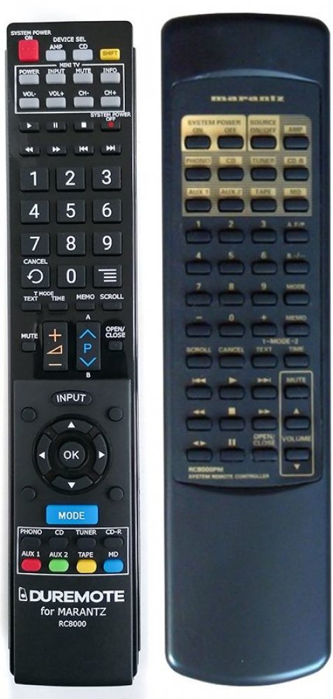 Dálkový ovladač MARANTZ RC8000PM duplikát 1:1 originálního dálkového ovladače. Dálkový ovladač je určen pro tyto modely MARANTZ:PM-4000, PM-6010, PM-7000, PM-7200, PM-8000, PM-8200, PM4000, PM6010, PM7000, PM7200, PM8000, PM8200. (Nemusí zde být uvedeny úplně všechny kompatibilní modely. Pokud si nejste jisti, sdělte nám svůj model (použijte online chat, e-mail, telefon), neprodleně zkontrolujeme ...