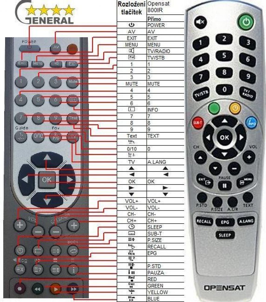 Dálkový ovladač General OPENSAT 800IR