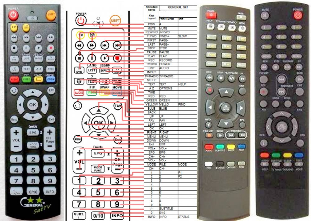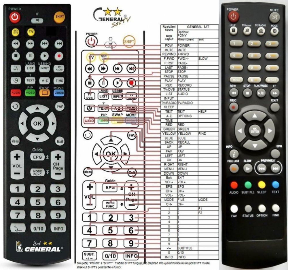 Náhradní dálkový ovladač OPENSAT IR LINE ALFA - 100% náhrada 1:1 za originální dálkový ovladač. Dálkový ovladač je určen pro tyto modely OPENSAT:IR LINE ALFA. (Nemusí zde být uvedeny úplně všechny kompatibilní modely. Pokud si nejste jisti, sdělte nám svůj model (použijte online chat, e-mail, telefon), neprodleně zkontrolujeme a ověříme, zda je tento ovladač kompatibilní s Vaším přístrojem. Za poskytnutou informaci ručíme.) Ovladač je dodáván ve verzi značkového dálkového ovladače General SAT/TV (zobrazen vlevo). Garantujeme Vám, že dostanete ovladač, který plně nahradí Váš původní originální ovladač a bude mít naprosto všechny funkce stejné.Není to univerzální ovladač, ale ovladač, který je naprogramován a přímo určen pro modely přístrojů uvedené výše. Není třeba žádné párování, žádné kódy. Obdržíte od nás ovladač, který je připraven k použití - jediné, co musíte udělat, je vložit baterie a ovladač hned funguje. Podívejte se na obrázek ovladače a ujistěte se, že jsou v tabulce všechny funkce jako na původním originálním ovladači. Jedná se o plnohodnotný náhradní dálkový ovladač (není to „univerzál“). Má naprosto všechny funkce přesně jako originální ovladač. Záruční lhůta na ovladač je 3 roky. Dodáván také jednoduchý návod s mapováním funkcí. DOPLŇKOVÁ FUNKCE: Tento dálkový ovladač je možno naprogramovat na 1 další přístroj. Budete moci jedním ovladačem ovládat oba přístroje (např. SAT+TV nebo SAT+DVD apod). Pokud nám do komentáře v objednávce napíšete model dalšího přístroje, naprogramujeme Vám ovladač na oba. Za tuto doplňkovou službu bude naúčtován příplatek k ceně ovladače 50 Kč: více informací