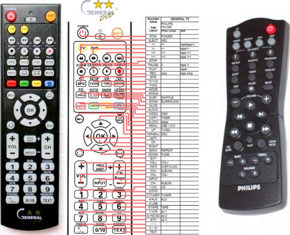 Náhradní dálkový ovladač PHILIPS 313911877040, MZ7, MZ7/34, MZ9 - 100% náhrada 1:1 za originální dálkový ovladač. Dálkový ovladač byl vyvinut speciálně na míru pro tyto modely značky PHILIPS:FW-380, FW-390, FW-C380, FW-C399, FW-C399/01, FW-C399/37, FW-C545/34, FW-C55, FW-C80/34, FW380, FWC380, FWC399, FWC399/01, FWC399/37, FWC80/34, FWM352. (Nemusí zde být uvedeny úplně všechny kompatibilní modely. Pokud si nejste jisti, sdělte nám svůj model (použijte online chat, e-mail, telefon), neprodleně zkontrolujeme a ověříme, zda je tento ovladač kompatibilní s Vaším přístrojem. Za poskytnutou informaci ručíme.) Ovladač je dodáván ve verzi značkového dálkového ovladače General DVD/AUDIO (zobrazen vlevo). Garantujeme Vám, že dostanete ovladač, který plně nahradí Váš původní originální ovladač a bude mít naprosto všechny funkce stejné.Není to univerzální ovladač, ale ovladač, který je naprogramován a přímo určen pro modely přístrojů uvedené výše. Není třeba žádné párování, žádné kódy. Obdržíte od nás ovladač, který je připraven k použití - jediné, co musíte udělat, je vložit baterie a ovladač hned funguje. Podívejte se na obrázek ovladače a ujistěte se, že jsou v tabulce všechny funkce jako na původním originálním ovladači. Jedná se o plnohodnotný náhradní dálkový ovladač (není to „univerzál“). Má naprosto všechny funkce přesně jako originální ovladač. Záruční lhůta na ovladač je 3 roky. Dodáván také jednoduchý návod s mapováním funkcí. DOPLŇKOVÁ FUNKCE: Tento dálkový ovladač je možno naprogramovat na 1 další přístroj. Budete moci jedním ovladačem ovládat oba přístroje (např. DVD+TV nebo SOUNDBAR+TV apod.). Pokud nám do komentáře v objednávce napíšete model dalšího přístroje, naprogramujeme Vám ovladač na oba. Za tuto doplňkovou službu bude naúčtován příplatek k ceně ovladače 50 Kč: více informací