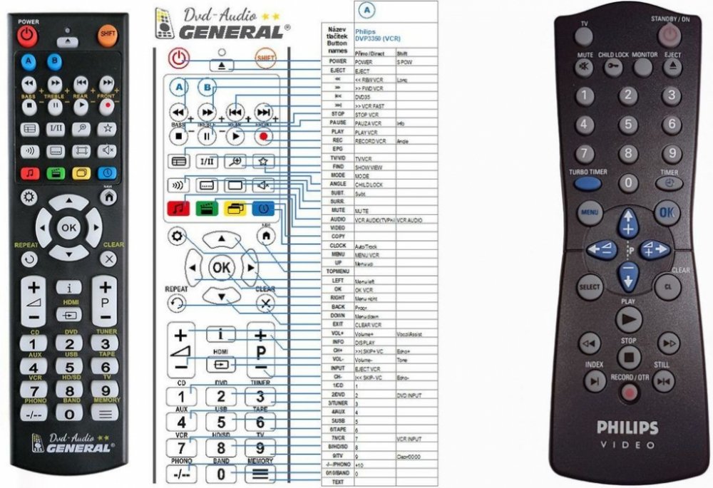 Náhradní dálkový ovladač PHILIPS 862266112101 video - 100% náhrada 1:1 za originální dálkový ovladač. Dálkový ovladač byl vyvinut speciálně na míru pro tyto modely značky PHILIPS:JP09 862266112101 VIDEO, VR220/02, VR220/07. (Nemusí zde být uvedeny úplně všechny kompatibilní modely. Pokud si nejste jisti, sdělte nám svůj model (použijte online chat, e-mail, telefon), neprodleně zkontrolujeme a ověříme, zda je tento ovladač kompatibilní s Vaším přístrojem. Za poskytnutou informaci ručíme.) Ovladač je dodáván ve verzi značkového dálkového ovladače General DVD/AUDIO (zobrazen vlevo). Garantujeme Vám, že dostanete ovladač, který plně nahradí Váš původní originální ovladač a bude mít naprosto všechny funkce stejné.Není to univerzální ovladač, ale ovladač, který je naprogramován a přímo určen pro modely přístrojů uvedené výše. Není třeba žádné párování, žádné kódy. Obdržíte od nás ovladač, který je připraven k použití - jediné, co musíte udělat, je vložit baterie a ovladač hned funguje. Podívejte se na obrázek ovladače a ujistěte se, že jsou v tabulce všechny funkce jako na původním originálním ovladači. Jedná se o plnohodnotný náhradní dálkový ovladač (není to „univerzál“). Má naprosto všechny funkce přesně jako originální ovladač. Záruční lhůta na ovladač je 3 roky. Dodáván také jednoduchý návod s mapováním funkcí. DOPLŇKOVÁ FUNKCE: Tento dálkový ovladač je možno naprogramovat na 1 další přístroj. Budete moci jedním ovladačem ovládat oba přístroje (např. DVD+TV nebo SOUNDBAR+TV apod.). Pokud nám do komentáře v objednávce napíšete model dalšího přístroje, naprogramujeme Vám ovladač na oba. Za tuto doplňkovou službu bude naúčtován příplatek k ceně ovladače 50 Kč: více informací