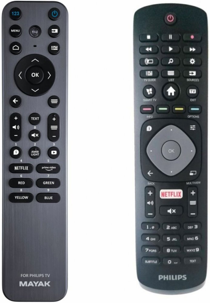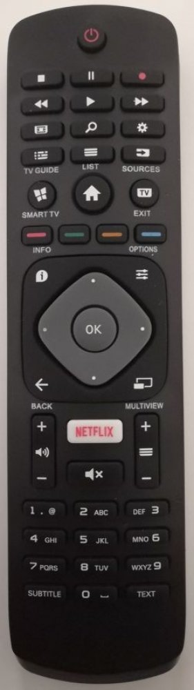 Náhradní dálkový ovladač PHILIPS 996596002916, HOF-47I-GJ14255 (996596002916, HOF47IGJ14255). Dálkový ovladač byl vyvinut speciálně na míru pro tyto modely značky PHILIPS:32PFS5823/12, 43PFD5301/12, 43PFS5301/12, 43PFS5302/12, 43PUH6101, 43PUS5162/12, 43PUS6101, 43PUS6162/12, 43PUS6201, 43PUS6262, 43PUS6703, 49PUH6101, 49PUS6101, 49PUS6162, 49PUS7502, 49PUS7502/12, 49PUT6101, 50PUS6162, 50PUS6272, 50PUS6554/12, 50PUS6703/12, 55PUH6101, 55PUS6101, 55PUS6201, 55PUS6262/12, 55PUS6523/12, 55PUT6101, 55PUT6201, 55PUT6400/12, 58PUS6203/12, 65PUS6162. (Nemusí zde být uvedeny úplně všechny kompatibilní modely. Pokud si nejste jisti, sdělte nám svůj model (použijte online chat, e-mail, telefon), neprodleně zkontrolujeme a ověříme, zda je tento ovladač kompatibilní s Vaším přístrojem. Za poskytnutou informaci ručíme.) Jedná se o naprosto stejný dálkový ovladač jako originál. Jediný rozdíl je, že nemá logo PHILIPS (to je jediný důvod, proč je levnější). Vysoká kvalita materiálu a zpracování, naprosto bezporuchový. Všechny naše dálkové ovladače kontrolujeme a testujeme, proto garantujeme jejich spolehlivost, nadstandartně dlouhý dosah signálu a výbornou citlivost tlačítek.Tento dálkový ovladač nemusíte nijak párovat, nevyžaduje žádné nastavování ani kódy. Stačí vložit baterie a funguje se všemi výše uvedenými modely. Dodává se dálkový ovladač YKF348-005, 996596006068 SMART, který je zcela kompatibilní, má naprosto stejný vzhled i funkce. Je to identický ovladač s jiným označením.