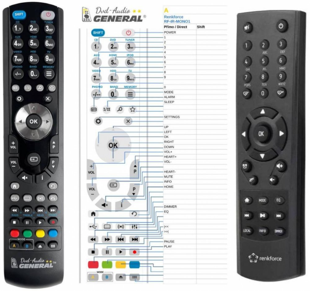 Náhradní dálkový ovladač RENKFORCE RF-IR-MONO1 (RFIRMONO1) - 100% náhrada 1:1 za originální dálkový ovladač. Dálkový ovladač je určen pro tyto modely :RF-IR-MONO1. (Nemusí zde být uvedeny úplně všechny kompatibilní modely. Pokud si nejste jisti, sdělte nám svůj model (e-mail, telefon), neprodleně zkontrolujeme a ověříme, zda je tento ovladač kompatibilní s Vaším přístrojem. Za poskytnutou informac