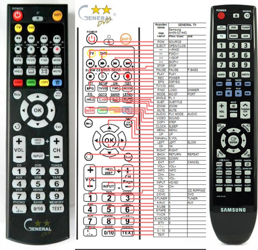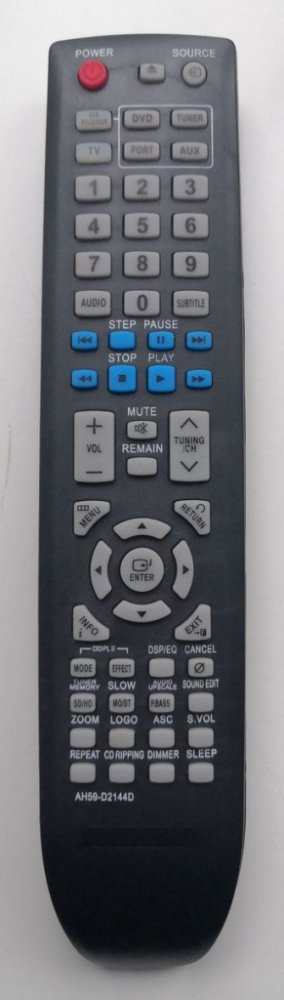 Náhradní dálkový ovladač SAMSUNG AH59-02144D (AH5902144D). Dálkový ovladač je určen pro tyto modely SAMSUNG:HT-TX725, HT-TX725G, HT-X725, HT-X725G, HT-Z320. (Nemusí zde být uvedeny úplně všechny kompatibilní modely. Pokud si nejste jisti, sdělte nám svůj model (použijte online chat, e-mail, telefon), neprodleně zkontrolujeme a ověříme, zda je tento ovladač kompatibilní s Vaším přístrojem. Za posky...