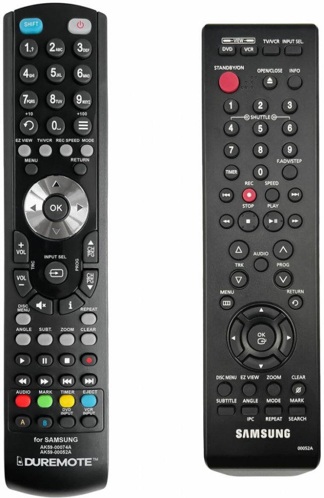 Dálkový ovladač SAMSUNG AK59-00052A (AK5900052A) duplikát 1:1 originálního dálkového ovladače. Dálkový ovladač byl vyvinut speciálně na míru pro tyto modely značky SAMSUNG:DVD-V5600, DVD-V6600, DVD-V6700. (Nemusí zde být uvedeny úplně všechny kompatibilní modely. Pokud si nejste jisti, sdělte nám svůj model (použijte online chat, e-mail, telefon), neprodleně zkontrolujeme a ověříme, zda je tento ovladač kompatibilní s Vaším přístrojem. Za poskytnutou informaci ručíme.) Dálkový ovladač General DVD duplikát má naprosto všechny funkce a popisky tlačítek stejné jako originální dálkový ovladač. Není třeba nic nastavovat, žádné kódy, funguje ihned po vložení baterií se všemi výše uvedenými modely.Ovladač je dodáván ve verzi značkového dálkového ovladače General DVD duplikát (zobrazen vlevo) Jedná se o ovladač vyrobený pro specifické zařízení – NENÍ to univerzální ovladač! Má naprosto všechny funkce jako originální dálkový ovladač. Má stejné popisky tlačítek, jako jste byli zvyklí z originálu. Popisky tlačítek jsou velmi odolné a nejdou seškrábat ani hrubou silou. 3 roky záruka.General DVD duplikát byl navržen a vyroben přesně podle originálního dálkového ovladače tlačítko po tlačítku. Ovladač je vyvinut a testován v České republice a podléhá CE a ROHS standardům. SNADNÉ INTUITIVNÍ POUŽÍVÁNÍ: Na rozdíl od běžných náhradních ovladačů, General DVD duplikát má 100% odpovídající popisky tlačítek jako na originálním ovladači. Srovnání: Jiné univerzální nebo programovatelné náhrady mají kvůli snížení nákladů názvy/popisky a rozložení tlačítek univerzální, popisky tlačítek často neodpovídají funkci tlačítka a vyžadují tedy návody k použití. To často vede k nejasnostem, co které tlačítko dělá a stálá potřeba manuálu je velmi obtěžující. S ovladačem General DVD duplikát žádný návod nepotřebujete, tlačítko dělá přesně to, co symbolizuje jeho popisek.GARANTUJEME 100% FUNKČNOST: Narozdíl od jiných náhrad je každý dálkový ovladač General DVD duplikát přímo v naší firmě navržen a testován na..
