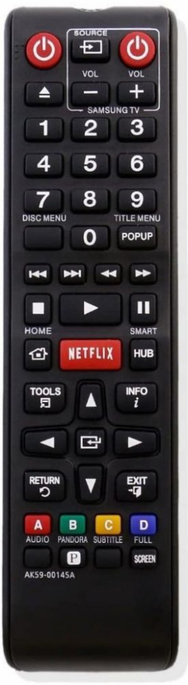 Náhradní dálkový ovladač SAMSUNG AK59-00145A (AK5900145A). Je určen pro tyto modely SAMSUNG:BDE5700, BDE5800, BDE5900, BDEM57, BDEM57C, BDEM59, BDEM59C, BDES6000. (Nemusí zde být uvedeny úplně všechny kompatibilní modely. Pokud si nejste jisti, sdělte nám svůj model (použijte online chat, e-mail, telefon), neprodleně zkontrolujeme a ověříme, zda je tento ovladač kompatibilní s Vaším přístrojem. Za poskytnutou informaci ručíme.) Jedná se o naprosto stejný dálkový ovladač jako originál. Jediný rozdíl je, že nemá logo SAMSUNG (to je jediný důvod, proč je levnější). Vysoká kvalita materiálu a zpracování, naprosto bezporuchový. Všechny naše dálkové ovladače kontrolujeme a testujeme, proto garantujeme jejich spolehlivost, nadstandartně dlouhý dosah signálu a výbornou citlivost tlačítek.Tento dálkový ovladač nemusíte nijak párovat, nevyžaduje žádné nastavování ani kódy. Stačí vložit baterie a funguje se všemi výše uvedenými modely.