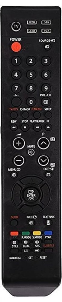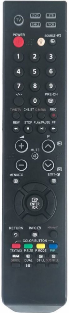 Náhradní dálkový ovladač SAMSUNG BN59-00516A (BN5900516A). Je určen pro tyto modely SAMSUNG:LE-26R74BD, LE-26R77BD, LE-27S73BD, LE-32R73BD, LE-32R74BD, LE-32R77BD, LE-32S73BD, LE-37R74BD, LE-37S73BD, LE-40R73BD, LE-40R74BD, LE-40R77BD, LE-40S73BD, LE-46M53BD, LE20S81B, LE26R73BD, PS-42C6HD, PS-42C7HD, PS-42E7HD, PS-42Q7HD, PS-50C6HD, PS-50C7HD, PS-50Q7HD, SP-50L6HD, SP-56K3HD, SP-67L6HD. (Nemusí zde být uvedeny úplně všechny kompatibilní modely. Pokud si nejste jisti, sdělte nám svůj model (použijte online chat, e-mail, telefon), neprodleně zkontrolujeme a ověříme, zda je tento ovladač kompatibilní s Vaším přístrojem. Za poskytnutou informaci ručíme.) Byl nahrazen kompatibilním dálkovým ovladačem BN59-00603A (zobrazen vlevo).Vysoká kvalita materiálu a zpracování, naprosto bezporuchový. Všechny naše dálkové ovladače kontrolujeme a testujeme, proto garantujeme jejich spolehlivost, nadstandartně dlouhý dosah signálu a výbornou citlivost tlačítek.Tento dálkový ovladač nemusíte nijak párovat, nevyžaduje žádné nastavování ani kódy. Stačí vložit baterie a funguje se všemi výše uvedenými modely.