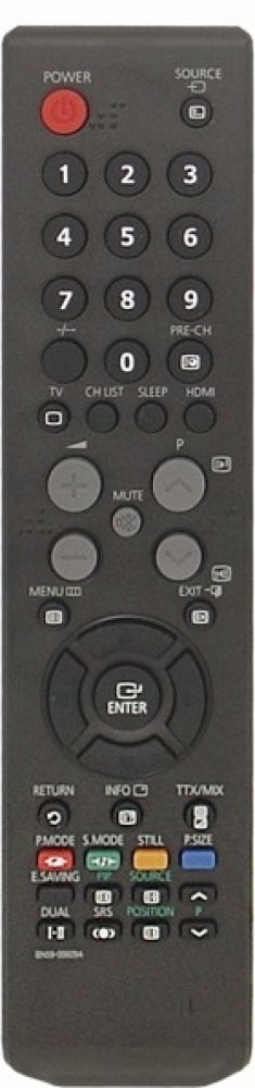 Náhradní dálkový ovladač SAMSUNG BN59-00609A (BN5900609A). Dálkový ovladač je určen pro tyto modely SAMSUNG: E-32S81B, LA26R71BA, LA32S81B, LA37S81B, LA40S81B, LA46S81B, LE-32S81B, LE22S81B, LE23R81B, LE23R81BH, LE23R82B, LE26R71B, LE26R72B, LE26R81B, LE26R81BH, LE26R82B, LE26R83B, LE26R84B, LE26S81B, LE26S81BH, LE27S71B, LE27S72B, LE32581, LE32R32B, LE32R71B, LE32R72B, LE32R75B, LE32R81BH, LE32S62B, LE32S71, LE32S71B, LE32S81B, LE32S81BH, LE32S81BX/XEC, LE37S71B, LE37S81B, LE37S81BH, LE40R81BH, LE40S81B, LE46S81B, PS-42C62H, PS-42C91H, PS-42C91HR, PS-42C92HR, PS-42E71H, PS-42E92H, PS-50C62H, PS-50C91H, PS-50C91HR, PS-50C92HR, PS-50E92H. (Nemusí zde být uvedeny úplně všechny kompatibilní modely. Pokud si nejste jisti, sdělte nám svůj model (použijte online chat, e-mail, telefon), neprodleně zkontrolujeme a ověříme, zda je tento ovladač kompatibilní s Vaším přístrojem. Za poskytnutou informaci ručíme.) Jedná se o naprosto stejný dálkový ovladač jako originál. Jediný rozdíl je, že nemá logo SAMSUNG (to je jediný důvod, proč je levnější). Vysoká kvalita materiálu a zpracování, naprosto bezporuchový. Všechny naše dálkové ovladače kontrolujeme a testujeme, proto garantujeme jejich spolehlivost, nadstandartně dlouhý dosah signálu a výbornou citlivost tlačítek. Tento dálkový ovladač nemusíte nijak párovat, nevyžaduje žádné nastavování ani kódy. Stačí vložit baterie a funguje se všemi výše uvedenými modely. Dodává se dálkový ovladač BN59-00603A, který je zcela kompatibilní, má naprosto stejný vzhled i funkce. Je to identický ovladač s jiným označením.