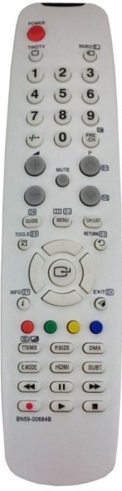 Náhradní dálkový ovladač SAMSUNG BN59-00684B (BN5900684B). Je určen pro tyto modely SAMSUNG:LE-26A456C, LE-26A457, LE-32A436T, LE-32A456C, LE-32A457, LE-37A436T, LE-37A456C, LE-37A457, LE-40A436T, LE-40A456C, LE-40A457, LE-40A536, LE19B450, LE19B650, LE22B450, LE22B650, LE26A456C2C, LE26A456C2D, LE26A457C1C, LE26A457C1D, LE26A466C2M, LE26A466C2W, LE26A467C1M, LE26A467C1W, LE26B450, LE32A436T1C, LE32A436T1D, LE32A437T2C, LE32A437T2D, LE32A446T1W, LE32A447T2W, LE32A456C2C, LE32A456C2D, LE32A457C1C, LE32A457C1D, LE32A466C2M, LE32A466C2W, LE32A467C1M, LE32A467C1W, LE32B350, LE32B450, LE32B450C4W, LE37A436T1C, LE37A436T1D, LE37A437T2C, LE37A437T2D, LE37A446T1W, LE37A447T2W, LE37A456C2C, LE37A456C2D, LE37A457C1C, LE37A457C1D, LE37A466C2M, LE37A466C2W, LE37A467C1M, LE37A467C1W, LE40A436T1C, LE40A436T1D, LE40A437T2C, LE40A437T2D, LE40A446T1W, LE40A447T2W, LE40A456C2C, LE40A456C2D, LE40A457C1C, LE40A457C1D, LE40A466C2M, LE40A466C2W, LE40A467C1M, LE40A467C1W, LE40A536T1F, LS19CFVKF, PS-42A457, PS-50A457, PS42A456P2C, PS42A456P2D, PS42A457P1C, PS42A457P1D, PS42A457P2D, PS42A466P2M, PS42A466P2W, PS42A467P1M, PS42A467P1W, PS50A456P2C, PS50A456P2D, PS50A457P1C, PS50A457P1D, PS50A466P2M, PS50A466P2W, PS50A467P1M, PS50A467P1W. (Nemusí zde být uvedeny úplně všechny kompatibilní modely. Pokud si nejste jisti, sdělte nám svůj model (použijte online chat, e-mail, telefon), neprodleně zkontrolujeme a ověříme, zda je tento ovladač kompatibilní s Vaším přístrojem. Za poskytnutou informaci ručíme.) Jedná se o naprosto stejný dálkový ovladač jako originál. Jediný rozdíl je, že nemá logo SAMSUNG (to je jediný důvod, proč je levnější). Vysoká kvalita materiálu a zpracování, naprosto bezporuchový. Všechny naše dálkové ovladače kontrolujeme a testujeme, proto garantujeme jejich spolehlivost, nadstandartně dlouhý dosah signálu a výbornou citlivost tlačítek.Tento dálkový ovladač nemusíte nijak párovat, nevyžaduje žádné nastavování ani kódy. Stačí vložit baterie a funguje se všemi výše uvedenými modely.