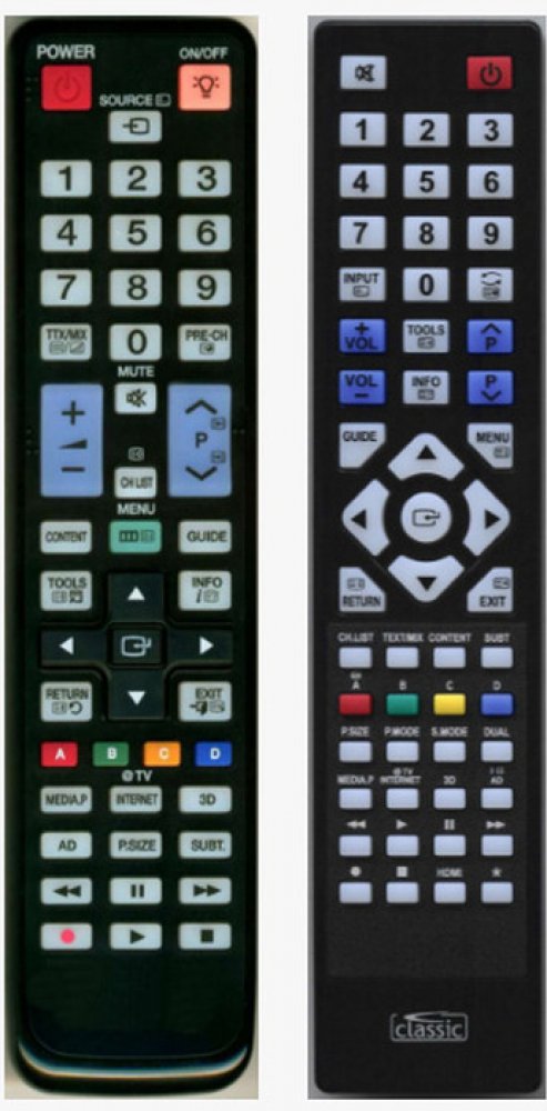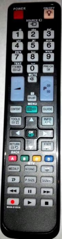 Náhradní dálkový ovladač SAMSUNG BN59-01040A (BN5901040A). Dálkový ovladač je určen pro tyto modely SAMSUNG: LE40C750, LE40C750R, LE46C750, PS50C680G, PS50C6900, UE32C6500. (Nemusí zde být uvedeny úplně všechny kompatibilní modely. Pokud si nejste jisti, sdělte nám svůj model (použijte online chat, e-mail, telefon), neprodleně zkontrolujeme a ověříme, zda je tento ovladač kompatibilní s Vaším přístrojem. Za poskytnutou informaci ručíme.) Jedná se o naprosto stejný dálkový ovladač jako originál. Jediný rozdíl je, že nemá logo SAMSUNG (to je jediný důvod, proč je levnější). Vysoká kvalita materiálu a zpracování, naprosto bezporuchový. Všechny naše dálkové ovladače kontrolujeme a testujeme, proto garantujeme jejich spolehlivost, nadstandartně dlouhý dosah signálu a výbornou citlivost tlačítek. Tento dálkový ovladač nemusíte nijak párovat, nevyžaduje žádné nastavování ani kódy. Stačí vložit baterie a funguje se všemi výše uvedenými modely.