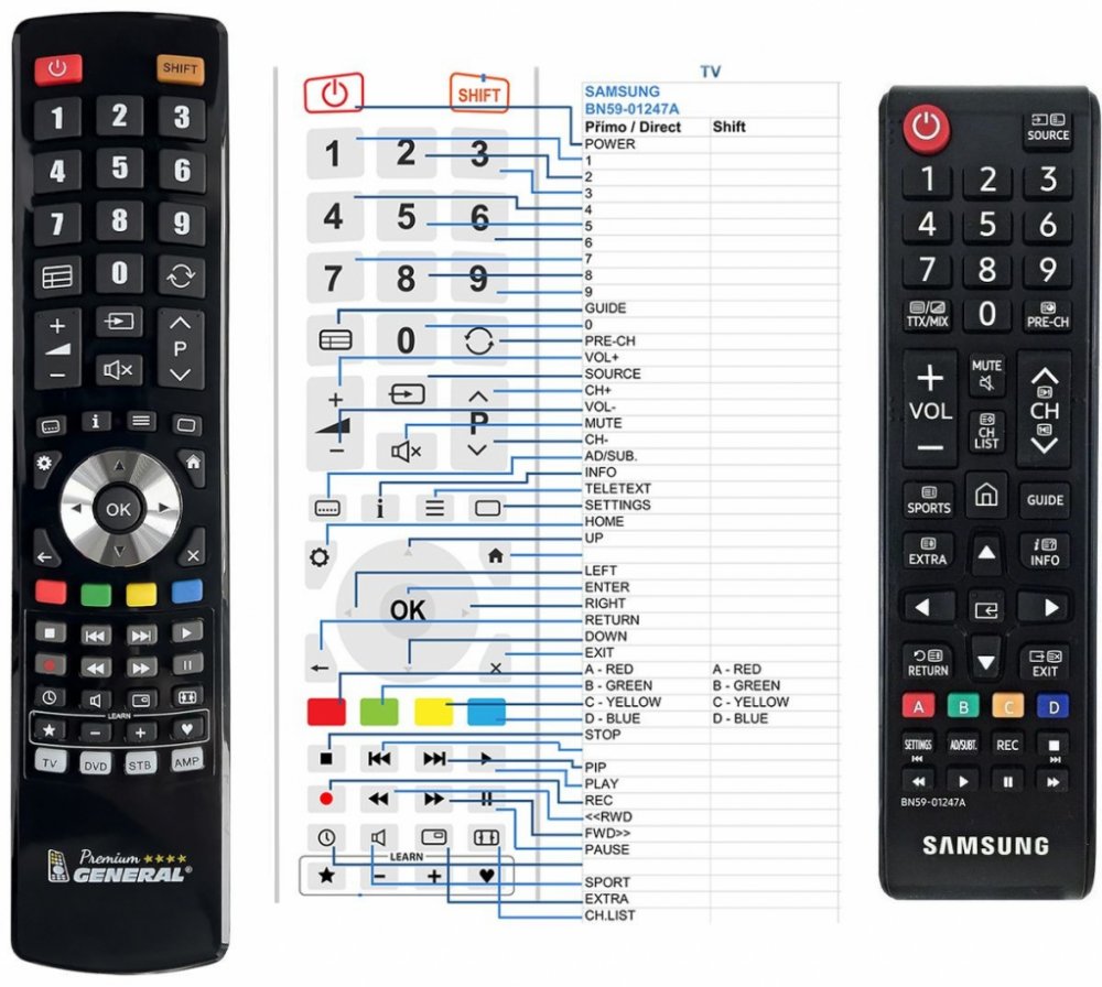 Náhradní dálkový ovladač SAMSUNG BN59-01247A (BN5901247A). Dálkový ovladač je určen pro tyto modely SAMSUNG: EU55K5602, UE32K5502, UE32K5572, UE32K5579, UE32K5672, UE40K5102AK, UE40K5103, UE40K5502AK, UE40K5572, UE40K5602, UE40K5672SU, UE40KU6070, UE40KU6072, UE40KU6072U, UE40KU6079, UE40KU6172, UE40KU6172U, UE40KU6402U, UE43KU6072U, UE43NU7022, UE49K5572, UE49K5572SU, UE49K5602, UE49K6372, UE49KS7500, UE49KU6452, UE50KU6070, UE50KU6072, UE50MU6172U, UE55K5602, UE55K5670, UE55K6300, UE55K6372, UE55KS7000, UE55KS7500, UE55KS7502, UE55KS9000, UE55KU6000, UE55KU6020, UE55KU6070, UE55KU6072U, UE55KU6092U, UE55KU6172U, UE55KU6470U, UE55KU6500, UE55KU6670, UE60KU6020, UE60KU6072, UE60KU6072U, UE65KS7502, UE65KS7590, UE65KS9000, UE65KS9002, UE65KU6072, UN65MU6290. (Nemusí zde být uvedeny úplně všechny kompatibilní modely. Pokud si nejste jisti, sdělte nám svůj model (použijte online chat, e-mail, telefon), neprodleně zkontrolujeme a ověříme, zda je tento ovladač kompatibilní s Vaším přístrojem. Za poskytnutou informaci ručíme.) Jedná se o naprosto stejný dálkový ovladač jako originál. Jediný rozdíl je, že nemá logo SAMSUNG (to je jediný důvod, proč je levnější). Vysoká kvalita materiálu a zpracování, naprosto bezporuchový. Všechny naše dálkové ovladače kontrolujeme a testujeme, proto garantujeme jejich spolehlivost, nadstandartně dlouhý dosah signálu a výbornou citlivost tlačítek. Tento dálkový ovladač nemusíte nijak párovat, nevyžaduje žádné nastavování ani kódy. Stačí vložit baterie a funguje se všemi výše uvedenými modely.