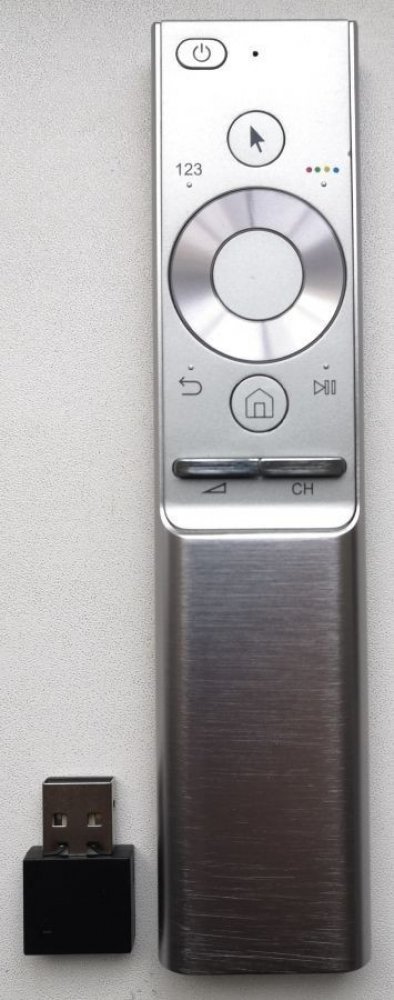 PLNOHODNOTNÁ náhrada magického dálkového ovladače SAMSUNG BN59-01270A (BN5901270A) s integrovanou klávesnicí a možností nastavení na další přístroje. Dálkový ovladač je určen pro tyto modely SAMSUNG: 55Q9FN, QE49Q7, QE55Q7, QE55Q8, QE65Q7, QE65Q8, QE65Q9, QE75Q7, QE75Q8, UE49MU6640, UE55MU7072. (Nemusí zde být uvedeny úplně všechny kompatibilní modely. Pokud si nejste jisti, sdělte nám svůj model (použijte online chat, e-mail, telefon), neprodleně zkontrolujeme a ověříme, zda je tento ovladač kompatibilní s Vaším přístrojem. Za poskytnutou informaci ručíme.) Náhradní Ovladač je dodáván ve verzi luxusního multifunkčního air mouse ovladače s integrovanou klávesnicí General MAGIC (zobrazen vlevo). Ovladač dostanete již nakonfigurovaný na výše uvedené modely. Nevyžaduje žádné nastavování ani kódy. FUNKCE: 2,4G rádiová technologie ovládání pohybem pomocí Gyroskopu (tzv. létající myš), RF bezdrátová klávesnice plus IR dálkové ovládání s funkcí učení (3v1). SNADNÁ INSTALACE - PLUG a PLAY: Zasuňte USB adaptér do televizoru, počkejte několik sekund, dokud se na displeji neobjeví šipka a můžete hned začít používat. USB adaptér je součástí a je již spárován. Není třeba žádné další párování. Nevyžaduje od Vás žádné nastavování, ovladač Vám přijde již námi nakonfigurovaný na Vaši SMART TV. Vybalíte, vložíte baterie a ovládáte! Ale přesto nepřicházíte o možnost si nastavení ovladače General Magic sami upravovat podle Vašich potřeb (pokud se třeba budete u sledování TV nudit :-) General MAGIC se umí učit kódy z jakéhokoliv jiného IR ovladače DVD, HIFI, BLUE-RAY, AVR atd. Můžete si na ho naučit tak, že bude umět ovládat nejen Váš smart televizor, ale také všechny ostatní Vaše přístroje. Ovládání všeho jedním ovladače General SMART bude velmi snadné. General MAGIC funguje jako létající myš. Pomocí integrovaného gyroskopu umožňuje snadné ovládání pohybem ruky držící ovladač. Je to stejné jako by jste měli v ruce PC myš, která neleží na podložce, ale hýbete s ní v prostoru. Rychlost pohybu kurzoru na obrazovce lze nastavit. Klávesnice na zadní straně usnadní vyhledávání a zadávání v aplikacích a internetu. General MAGIC má 7 barev podsvícení, které můžete snadno změnit. Vyberte si barvu, která se vám nejvíce líbí! Ovladač si pamatuje nastavení. Ovladač nemá hlasové ovládání. Funguje se systémy Windows, Mac OS, Android, Linux. Perfektní citlivost a dosah přes 15 metrů díky rádiové technologii. Český uživatelský návod přiložen. V případě problému ochotná technická podpora na našem telefonu, emailu nebo na online chatu vpravo dole na této stránce (ale většinou není potřeba, námi napsaný návod s obrázky pochopí každý).