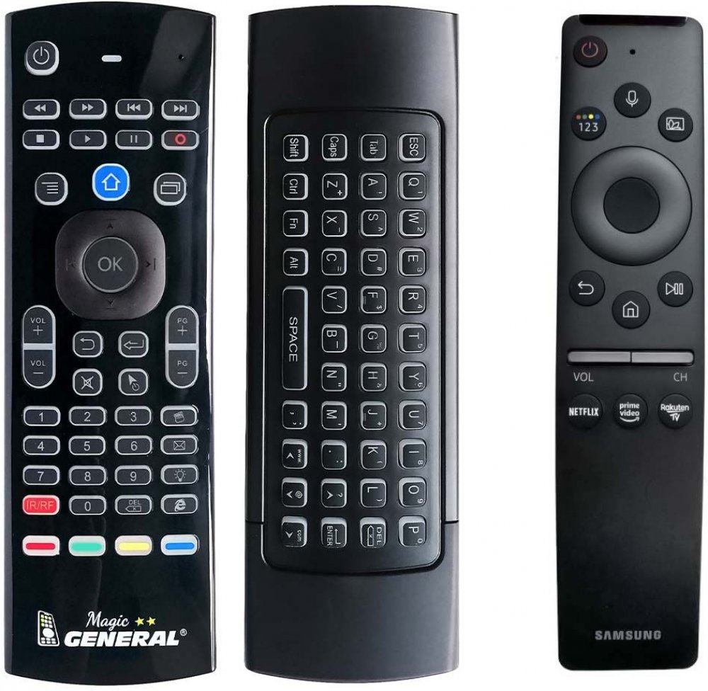 PLNOHODNOTNÁ náhrada magického dálkového ovladače SAMSUNG BN59-01312B (BN5901312B) s integrovanou klávesnicí a možností nastavení na další přístroje.Dálkový ovladač je určen pro tyto modely SAMSUNG:Q65Q60R, QE43Q60, QE43Q60RATXXH, QE49Q60RATXXH, QE49Q65RATXXH, QE49Q70RATXXH, QE55Q60RATXXH, QE55Q60TAU, QE55Q70R, QE55Q70RATXXH, QE55Q80R, QE55Q80RATXXH, QE55Q82RATXXH, QE55Q85, QE55Q85RATXXH, QE65Q60R, QE65Q60RATXXH, QE65Q65R, QE65Q65RAT, QE65Q70RATXXH, QE65Q80R, QE65Q80RATXXH, QE65Q80T, QE65Q82RATXXH, QE65Q85RATXXH, QE65Q900RATXXH, QE75Q60R, QE75Q60RATXXH, QE75Q60T, QE75Q70RATXXH, QE75Q77TA, QE75Q85RATXXH, QE82Q60, QE82Q60RATXXH, QE82Q70RATXXC, QE82Q70RATXXH, SERIES Q80R, TM1950A, TM1950C, UE32N5002AK, UE43RU7452, UE43TU8502, UE49RU7300K, UE49RU7300W, UE49RU7302K, UE49RU7305K, UE49RU7372U, UE49RU7379U, UE50RU7452, UE50TU8002, UE55RU7300K, UE55RU7300W, UE55RU7302K, UE55RU7305K, UE55RU7372U, UE55RU7375U, UE55RU7379U, UE65RU7300K, UE65RU7300W, UE65RU7302K, UE65RU7305K, UE65RU7372U. (Nemusí zde být uvedeny úplně všechny kompatibilní modely. Pokud si nejste jisti, sdělte nám svůj model (použijte online chat, e-mail, telefon), neprodleně zkontrolujeme a ověříme, zda je tento ovladač kompatibilní s Vaším přístrojem. Za poskytnutou informaci ručíme.) Náhradní Ovladač je dodáván ve verzi luxusního multifunkčního air mouse ovladače s integrovanou klávesnicí General MAGIC (zobrazen vlevo). Ovladač dostanete již nakonfigurovaný na výše uvedené modely. Nevyžaduje žádné nastavování ani kódy.FUNKCE:2,4G rádiová technologie ovládání pohybem pomocí Gyroskopu (tzv. létající myš), RF bezdrátová klávesnice + IR dálkové ovládání s funkcí učení (3v1).SNADNÁ INSTALACE - PLUG & PLAY: Zasuňte USB adaptér do televizoru, počkejte několik sekund, dokud se na displeji neobjeví šipka a můžete hned začít používat. USB adaptér je součástí a je již spárován. Není třeba žádné další párování. Nevyžaduje od Vás žádné nastavování, ovladač Vám přijde již námi nakonfigurovaný na Vaši SMART TV. Vybalíte, vložíte bater..