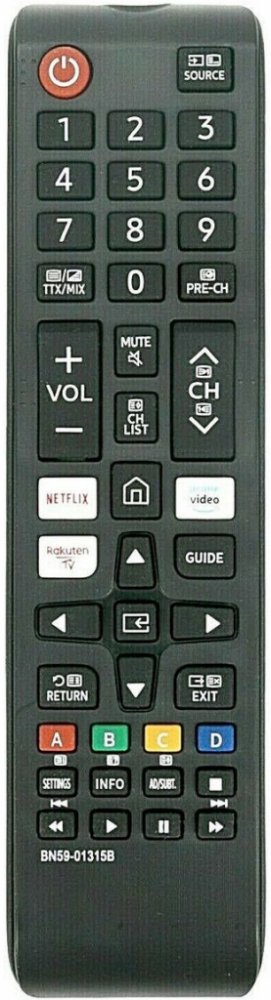 Náhradní dálkový ovladač SAMSUNG BN59-01315B (BN5901315B) - 100procent náhrada 1:1 za originální dálkový ovladač. Dálkový ovladač je určen pro tyto modely SAMSUNG: QE43Q60AAU, QE43Q67TA, QE43QN90BAT, QE65Q67AAU, UA50TU8000, UE32N5002AK, UE32T5302, UE32T5372C, UE436RU7092, UE43AU7172, UE43AU9072, UE43CU7102, UE43CU7172, UE43CU719, UE43RU7092, UE43RU7100K, UE43RU7100W, UE43RU7102K, UE43RU7105K, UE43RU7170S, UE43RU7170U, UE43RU7172U, UE43RU7175U, UE43RU7179U, UE43TU7172, UE49RU7300K, UE49RU7300W, UE49RU7302K, UE49RU7305K, UE49RU7372U, UE49RU7379U, UE50RU7092, UE50RU7100K, UE50RU7100W, UE50RU7102K, UE50RU7105K, UE50RU7170S, UE50RU7170U, UE50RU7172U, UE50RU7175U, UE50RU7179U, UE50RU7472, UE50TU7002K, UE50TU7072, UE50TU7172, UE55RU7092U, UE55RU7100K, UE55RU7100W, UE55RU7102K, UE55RU7105K, UE55RU7170S, UE55RU7170U, UE55RU7172U, UE55RU7175U, UE55RU7179U, UE55RU7300K, UE55RU7300W, UE55RU7302K, UE55RU7305K, UE55RU7372U, UE55RU7375U, UE55RU7379U, UE55RU7472, UE55RU8002, UE55TU6905K, UE58RU7100K, UE58RU7100W, UE58RU7102K, UE58RU7105K, UE58RU7170S, UE58RU7172U, UE58RU7179U, UE65RU7092, UE65RU7100K, UE65RU7100W, UE65RU7102K, UE65RU7105K, UE65RU7170S, UE65RU7170U, UE65RU7172, UE65RU7172U, UE65RU7175U, UE65RU7179U, UE65RU7300K, UE65RU7300W, UE65RU7302K, UE65RU7305K, UE65RU7372U, UE65RU8000UXXU, UE70RU7022, UE75RU7100K, UE75RU7100W, UE75RU7102K, UE75RU7105K, UE75RU7170S, UE75RU7170U, UE75RU7172U, UE75RU7175U, UE75RU7179U, UE75TU7092. (Nemusí zde být uvedeny úplně všechny kompatibilní modely. Pokud si nejste jisti, sdělte nám svůj model (použijte online chat, e-mail, telefon), neprodleně zkontrolujeme a ověříme, zda je tento ovladač kompatibilní s Vaším přístrojem. Za poskytnutou informaci ručíme.) Ovladač je dodáván ve verzi značkového dálkového ovladače General Premium (zobrazen vlevo). Garantujeme Vám, že dostanete ovladač, který plně nahradí Váš původní originální ovladač a bude mít naprosto všechny funkce. Není to univerzální ovladač, ale ovladač, který je naprogramován a přímo určen pro modely přístrojů uvedené výše. Není třeba žádné párování, žádné kódy. Obdržíte od nás ovladač, který je připraven k použití - jediné, co musíte udělat, je vložit baterie a ovladač hned funguje. Podívejte se na obrázek ovladače a ujistěte se, že jsou v tabulce všechny funkce jako na původním originálním ovladači. Jedná se o plnohodnotný náhradní dálkový ovladač (není to „univerzál“). Má naprosto všechny funkce přesně jako originální ovladač. Záruční lhůta na ovladač je 2 roky. Dodáván také jednoduchý návod s mapováním funkcí. DOPLŇKOVÁ FUNKCE: Tento dálkový ovladač je možno naprogramovat na 1-4 zařízení (celkem tedy 4). Budete moci jedním ovladačem ovládat několik různých přístrojů jedním ovladačem. Pokud nám do komentáře v objednávce napíšete modely dalších přístrojů, naprogramujeme Vám ovladač na všechny. Za tuto doplňkovou službu bude naúčtován příplatek k ceně ovladače 50 Kč: více informací V případě, že v budoucnu vyměníte/obměníte Vaši domácí elektroniku, jsme schopni Vám tento ovladač přeprogramovat na naprosto jakékoliv nové/á zařízení. Ovladač General přežije Váš stávající přístroj!