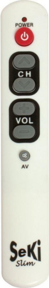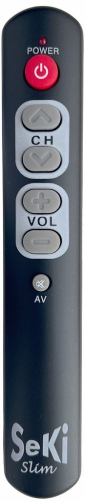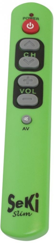 Samoučící jednoduchý dálkový ovladač SeKi SLIM pro jednoduché ovládání základních funkcí televize, set top boxu nebo satelitu. Vhodný zejména pro seniory, pro děti, nemocniční zařízení, lázeňská zařízení, restaurace, hotely apod. Tento ovladač je učící, takže jedinou podmínkou pro jeho zprovoznění je funkčnost původního originálního dálkového ovladače k danému zařízení. Lepší alternativa je disajn...