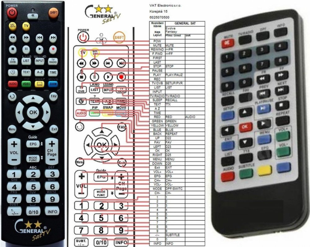 Náhradní dálkový ovladač SENCOR SDF-890T (SDF890T) - 100procent náhrada 1:1 za originální dálkový ovladač. Dálkový ovladač je určen pro tyto modely SENCOR: SDF 890T, SDF-890T, SDF890T. (Nemusí zde být uvedeny úplně všechny kompatibilní modely. Pokud si nejste jisti, sdělte nám svůj model (použijte online chat, e-mail, telefon), neprodleně zkontrolujeme a ověříme, zda je tento ovladač kompatibilní s Vaším přístrojem. Za poskytnutou informaci ručíme.) Ovladač je dodáván ve verzi značkového dálkového ovladače General SAT/TV (zobrazen vlevo). Garantujeme Vám, že dostanete ovladač, který plně nahradí Váš původní originální ovladač a bude mít naprosto všechny funkce. Není to univerzální ovladač, ale ovladač, který je naprogramován a přímo určen pro modely přístrojů uvedené výše. Není třeba žádné párování, žádné kódy. Obdržíte od nás ovladač, který je připraven k použití - jediné, co musíte udělat, je vložit baterie a ovladač hned funguje. Podívejte se na obrázek ovladače a ujistěte se, že jsou v tabulce všechny funkce jako na původním originálním ovladači. Jedná se o plnohodnotný náhradní dálkový ovladač (není to „univerzál“). Má naprosto všechny funkce přesně jako originální ovladač. Záruční lhůta na ovladač je 2 roky. Dodáván také jednoduchý návod s mapováním funkcí. DOPLŇKOVÁ FUNKCE: Tento dálkový ovladač je možno naprogramovat na 1 další přístroj. Budete moci jedním ovladačem ovládat oba přístroje (např. SAT plus TV nebo SAT plus DVD apod). Pokud nám do komentáře v objednávce napíšete model dalšího přístroje, naprogramujeme Vám ovladač na oba. Za tuto doplňkovou službu bude naúčtován příplatek k ceně ovladače 50 Kč: více informací
