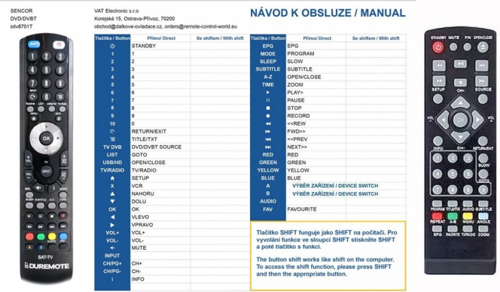 Výhodou dálkového ovladače je také fakt, že v případě, že Vám jakékoliv původní zařízení odejde, jsme schopni Vám tento ovladač za poplatek Kč 50,- plus poštovné přeprogramovat na nové/á zařízení.