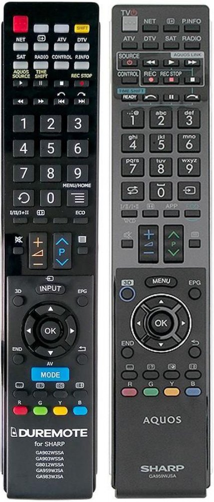 Náhradní dálkový ovladač SHARP GA959WJSA. Je určen pro tyto modely SHARP:LC-40LE833E, LC-46LE833E, LC-52LE833E, LC-60LE833E, LC-70LE838E, LC-80LE833E, LC40LE833E, LC46LE833E, LC46LX814E, LC52LE833E, LC60LE833E, LC70LE838E. (Nemusí zde být uvedeny úplně všechny kompatibilní modely. Pokud si nejste jisti, sdělte nám svůj model (použijte online chat, e-mail, telefon), neprodleně zkontrolujeme a ověříme, zda je tento ovladač kompatibilní s Vaším přístrojem. Za poskytnutou informaci ručíme.) Jedná se o naprosto stejný dálkový ovladač jako originál. Jediný rozdíl je, že nemá logo SHARP (to je jediný důvod, proč je levnější). Vysoká kvalita materiálu a zpracování, naprosto bezporuchový. Všechny naše dálkové ovladače kontrolujeme a testujeme, proto garantujeme jejich spolehlivost, nadstandartně dlouhý dosah signálu a výbornou citlivost tlačítek.Tento dálkový ovladač nemusíte nijak párovat, nevyžaduje žádné nastavování ani kódy. Stačí vložit baterie a funguje se všemi výše uvedenými modely. Dodává se dálkový ovladač GA902WJSA, GA903WJSA, GB012WJSA, který je zcela kompatibilní, má naprosto stejný vzhled i funkce. Je to identický ovladač s jiným označením.
