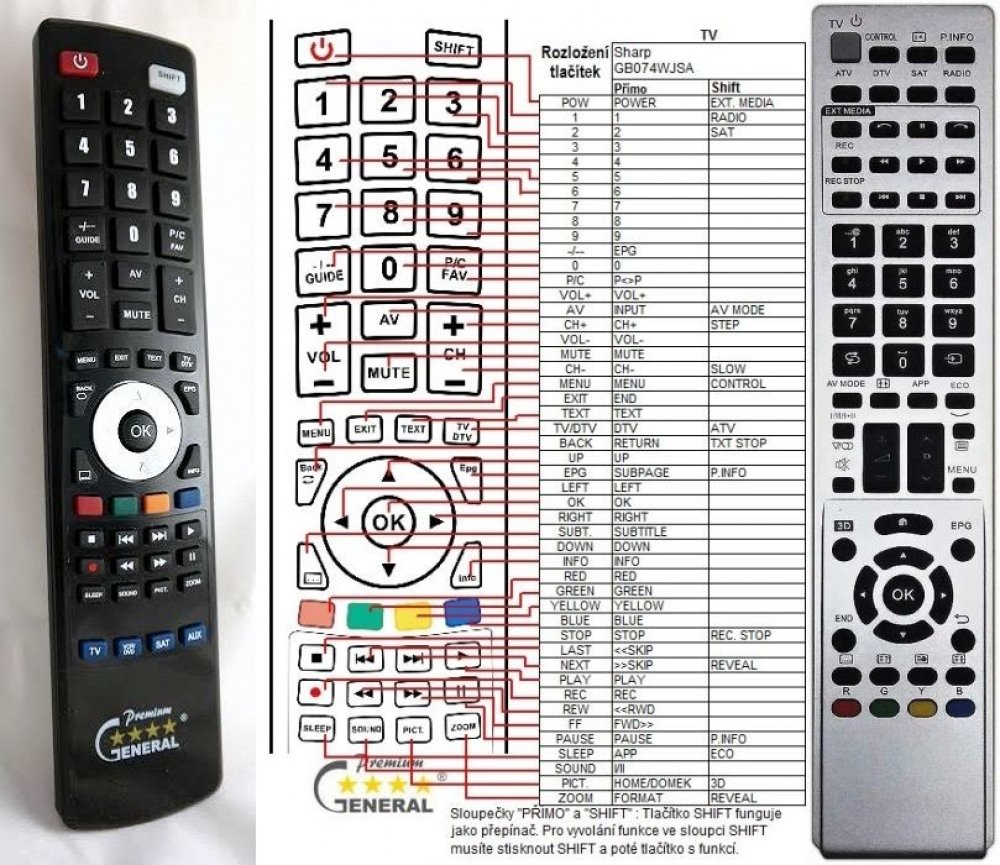 Náhradní dálkový ovladač SHARP GB074WJSA v luxusním disajnu. Funkčnost dálkového ovladače stejná s originálem, nový disajn krabičky.