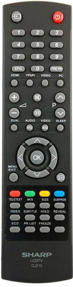Dálkový ovladač SHARP GJ210, 9JR9800000003 duplikát 1:1 originálního dálkového ovladače. Dálkový ovladač byl vyvinut speciálně na míru pro tyto modely značky SHARP:LC-19S7E, LC-19SH7E-BK, LC-26S7E, LC-26SB25E, LC-26SB25S, LC-26SH7E-BK, LC-32S7E, LC-32SB25E, LC-32SH7E, LC-32SH7E-BK, LC-42SB55E, LC-42SH7E-BK, LC19SH7EBK, LC26SH7EBK, LC32SH7EBK. (Nemusí zde být uvedeny úplně všechny kompatibilní mode...