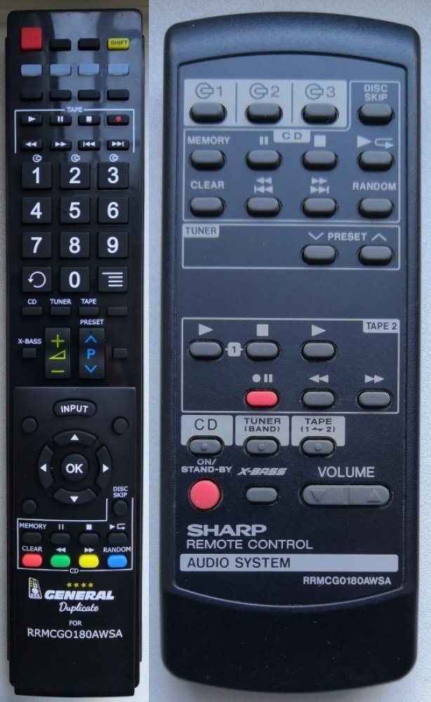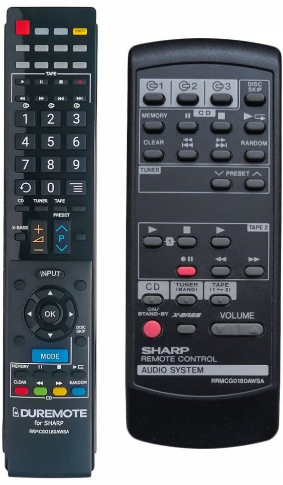 Dálkový ovladač SHARP RRMCG0180AWSA duplikát 1:1 originálního dálkového ovladače. Dálkový ovladač je určen pro tyto modely SHARP: CD-C605, CDC605. (Nemusí zde být uvedeny úplně všechny kompatibilní modely. Pokud si nejste jisti, sdělte nám svůj model (použijte online chat, e-mail, telefon), neprodleně zkontrolujeme a ověříme, zda je tento ovladač kompatibilní s Vaším přístrojem. Za poskytnutou inf...