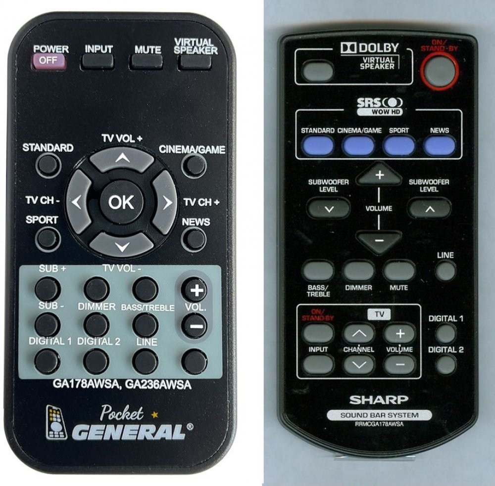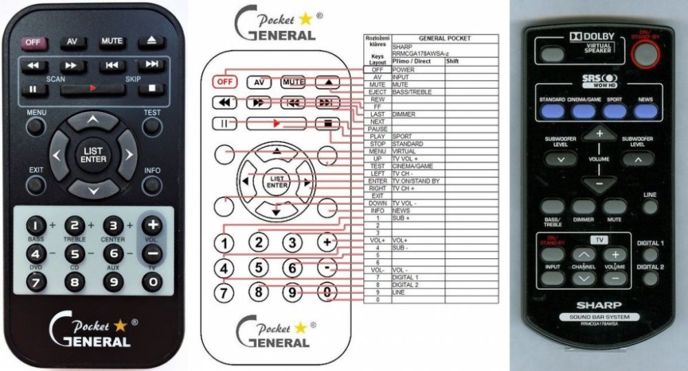 Dálkový ovladač SHARP RRMCGA178AWSA duplikát 1:1 originálního dálkového ovladače. Dálkový ovladač byl vyvinut speciálně na míru pro tyto modely značky SHARP:HT-SB300, HTSB300. (Nemusí zde být uvedeny úplně všechny kompatibilní modely. Pokud si nejste jisti, sdělte nám svůj model (použijte online chat, e-mail, telefon), neprodleně zkontrolujeme a ověříme, zda je tento ovladač kompatibilní s Vaším přístrojem. Za poskytnutou informaci ručíme.) Dálkový ovladač General POCKET duplikát má naprosto všechny funkce a popisky tlačítek stejné jako originální dálkový ovladač. Není třeba nic nastavovat, žádné kódy, funguje ihned po vložení baterií se všemi výše uvedenými modely.Ovladač je dodáván ve verzi značkového dálkového ovladače General POCKET duplikát (zobrazen vlevo) Jedná se o ovladač vyrobený pro specifické zařízení – NENÍ to univerzální ovladač! Má naprosto všechny funkce jako originální dálkový ovladač. Má stejné popisky tlačítek, jako jste byli zvyklí z originálu. Popisky tlačítek jsou velmi odolné a nejdou seškrábat ani hrubou silou. 3 roky záruka.General POCKET duplikát byl navržen a vyroben přesně podle originálního dálkového ovladače tlačítko po tlačítku. Ovladač je vyvinut a testován v České republice a podléhá CE a ROHS standardům. SNADNÉ INTUITIVNÍ POUŽÍVÁNÍ: Na rozdíl od běžných náhradních ovladačů, General POCKET duplikát má 100% odpovídající popisky tlačítek jako na originálním ovladači. Srovnání: Jiné univerzální nebo programovatelné náhrady mají kvůli snížení nákladů názvy/popisky a rozložení tlačítek univerzální, popisky tlačítek často neodpovídají funkci tlačítka a vyžadují tedy návody k použití. To často vede k nejasnostem, co které tlačítko dělá a stálá potřeba manuálu je velmi obtěžující. S ovladačem General POCKET duplikát žádný návod nepotřebujete, tlačítko dělá přesně to, co symbolizuje jeho popisek.GARANTUJEME 100% FUNKČNOST: Narozdíl od jiných náhrad je každý dálkový ovladač General POCKET duplikát přímo v naší firmě navržen a testován na míru pro ..
