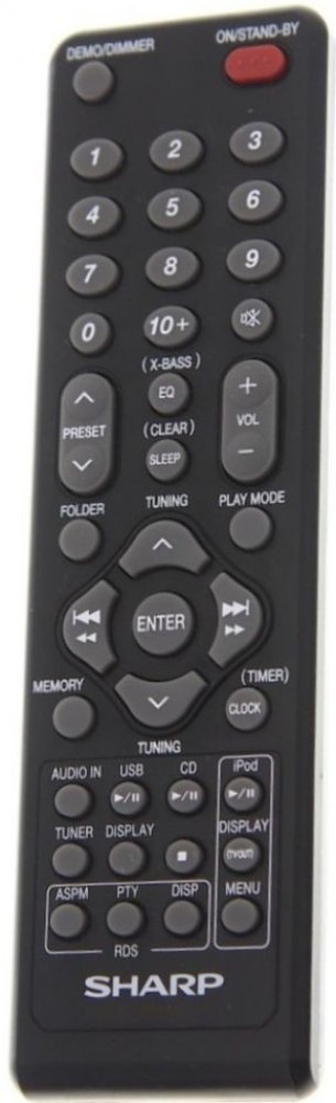 Náhradní dálkový ovladač SHARP RRMCGA291AWSA, RRMCGA292AWSA - 100procent náhrada 1:1 za originální dálkový ovladač. Dálkový ovladač je určen pro tyto modely SHARP: CD-DA1300, CD-DA1500, GX-M10H. (Nemusí zde být uvedeny úplně všechny kompatibilní modely. Pokud si nejste jisti, sdělte nám svůj model (použijte online chat, e-mail, telefon), neprodleně zkontrolujeme a ověříme, zda je tento ovladač kom...