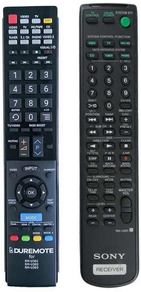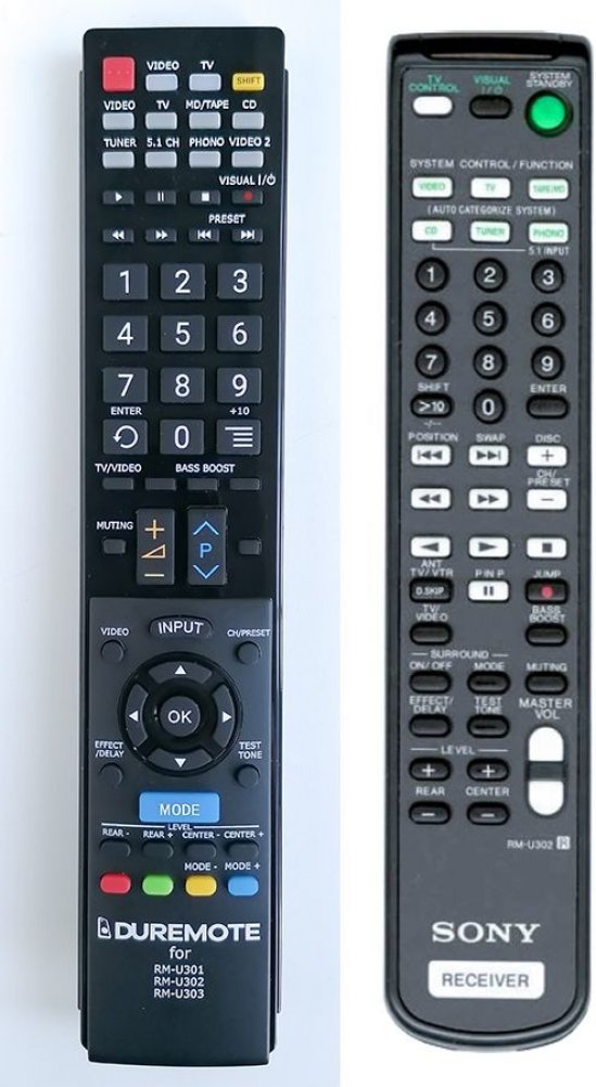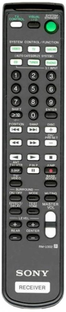 Náhradní dálkový ovladač Sony RM-U302 pro modely STR-DE225, STR-DE235, STR-DE245, STR-DE25, STR-DE315, STR-DE324, STR-DE325, STR-DE326, STR-DE32S, STR-DE335, STR-DE355, STR-SE391, STR-DE414, STR-DE415, STR-DE418, STR-DE425, STR-DE505, STR-DE515, TA-VE150 a mnoho dalších.Ovladač má stejná tlačítka a funkce ačkoliv vzhled ovladač je odlišný.