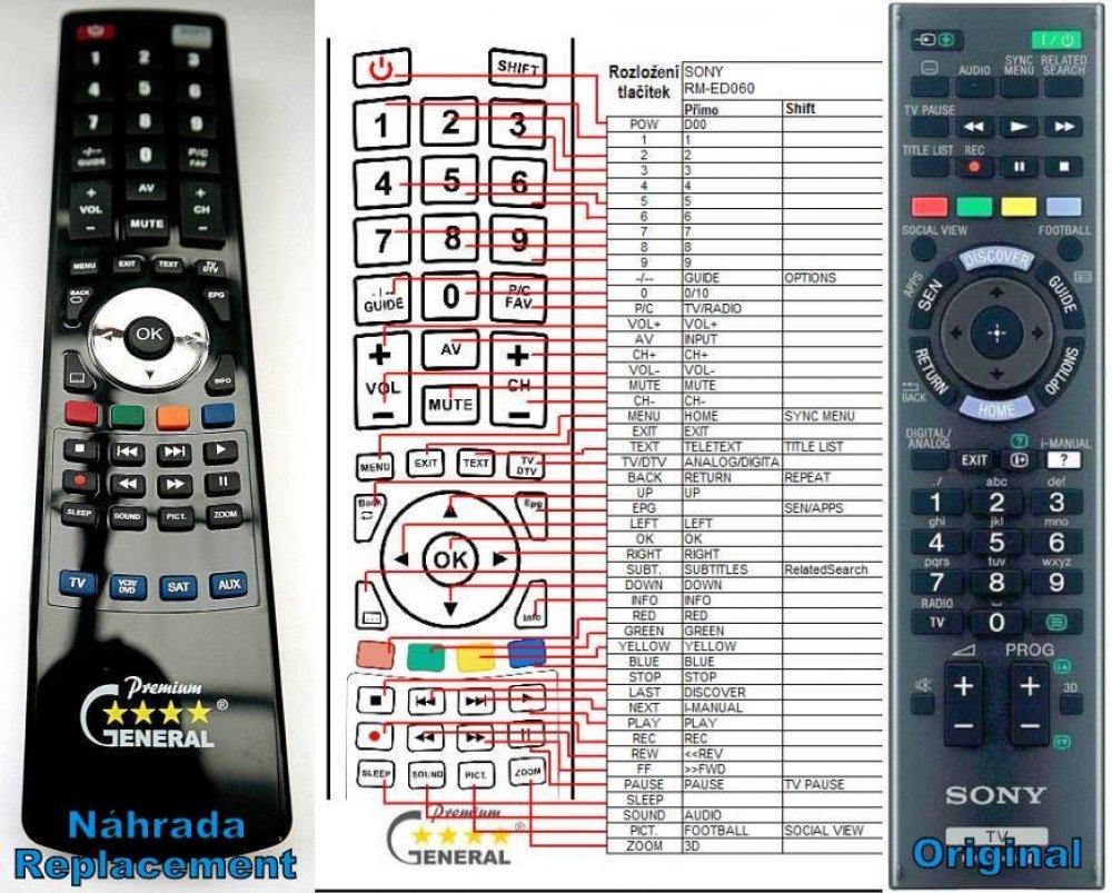 Dálkový ovladač SONY RM-ED060 (RMED060, RM-GD022). Vzhled a funkčnost dálkového ovladače stejná s originálem.