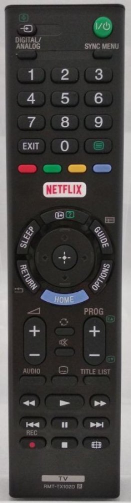 Náhradní dálkový ovladač SONY RMT-TX102D (RMTTX102D). Dálkový ovladač je určen pro tyto modely SONY: 55UHD122T2S2SM, KD-43XE7005, KD-49XF7077, KD-65XE8596, KD65XE8596, KDL-32R500C, KDL-32WD755, KDL-40R550C, KDL-40RD450, KDL-40WD650, KDL-43WD757, KDL-48R550C, KDL-48WD650, KDL-49WD755, KDL32R500C, KDL32WD757, KDL40R550C, KDL40RD450, KDL40WD650, KDL48R550C, KDL48WD650, KDL49WD755, RMT-TX102D, RMTTX10...