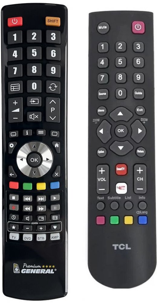 Náhradní dálkový ovladač TCL RC200 - 100% náhrada 1:1 za originální dálkový ovladač. Dálkový ovladač byl vyvinut speciálně na míru pro tyto modely značky TCL:E3800, S4700. (Nemusí zde být uvedeny úplně všechny kompatibilní modely. Pokud si nejste jisti, sdělte nám svůj model (použijte online chat, e-mail, telefon), neprodleně zkontrolujeme a ověříme, zda je tento ovladač kompatibilní s Vaším přístrojem. Za poskytnutou informaci ručíme.) Ovladač je dodáván ve verzi značkového dálkového ovladače General Premium (zobrazen vlevo). Garantujeme Vám, že dostanete ovladač, který plně nahradí Váš původní originální ovladač a bude mít naprosto všechny funkce stejné.Není to univerzální ovladač, ale ovladač, který je naprogramován a přímo určen pro modely přístrojů uvedené výše. Není třeba žádné párování, žádné kódy. Obdržíte od nás ovladač, který je připraven k použití - jediné, co musíte udělat, je vložit baterie a ovladač hned funguje. Podívejte se na obrázek ovladače a ujistěte se, že jsou v tabulce všechny funkce jako na původním originálním ovladači. Jedná se o plnohodnotný náhradní dálkový ovladač (není to „univerzál“). Má naprosto všechny funkce přesně jako originální ovladač. Záruční lhůta na ovladač je 3 roky. Dodáván také jednoduchý návod s mapováním funkcí. DOPLŇKOVÁ FUNKCE: Tento dálkový ovladač je možno naprogramovat na 1-4 zařízení (celkem tedy 4). Budete moci jedním ovladačem ovládat několik různých přístrojů jedním ovladačem. Pokud nám do komentáře v objednávce napíšete modely dalších přístrojů, naprogramujeme Vám ovladač na všechny. Za tuto doplňkovou službu bude naúčtován příplatek k ceně ovladače 50 Kč: více informacíV případě, že v budoucnu vyměníte/obměníte Vaši domácí elektroniku, jsme schopni Vám tento ovladač přeprogramovat na naprosto jakékoliv nové/á zařízení. Ovladač General přežije Váš stávající přístroj!