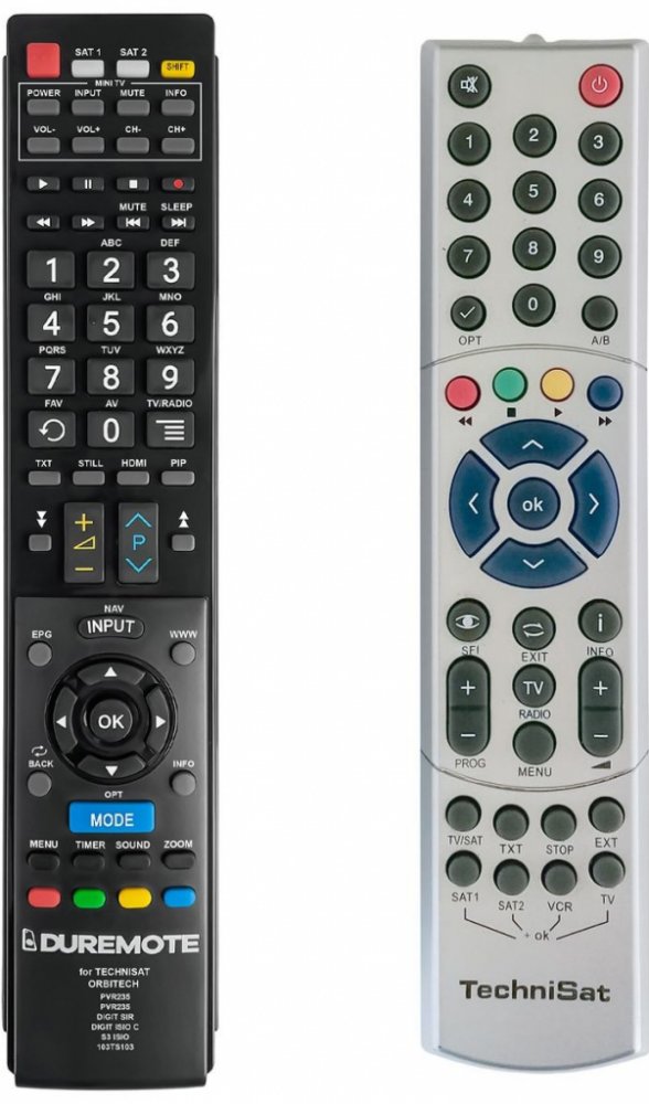 Náhradní dálkový ovladač TECHNISAT 103TS103 (S). Dálkový ovladač byl vyvinut speciálně na míru pro tyto modely značky TECHNISAT:AIRSTAR TELESTICK T1, DIGICORDER, DIGICORDER HD S2, DIGICORDER HDS2, DIGICORDER T1 PVR, DIGIMOD T1, DIGIMOD T1 MF4-S, DIGIPAL 2, DIGIPAL 2 TX, DIGIPLUS STR1 X, DIGIT CCI, DIGIT ISIO S1, DIGIT MF4-K, DIGIT MF4-S T1, DIGIT S2, DIGITMOD S1, DIGITMOD S1 IR, DIGITMOD T1, DIGIT