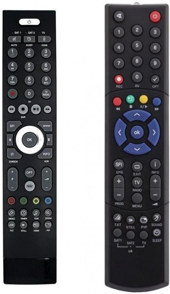 Náhradní dálkový ovladač TECHNISAT TECHNISTAR SIR. Je určen pro tyto modely TECHNISAT: TECHNISTAR S2, DIGICORDER HD-S2, DIGICORDER HDS2, DIGICORDER T1, FB PVR 135 DIGICORDERS1 , FB PVR 235 DIGICORDERS2 PVR, FB PVR 235 DIGICORDERS2 VR, ORBITECH CI 500 , TECHNISAT DIGICORDER HDK2 , TECHNISAT DIGICORDER HDS2, TECHNISAT DIGICORDER HDS3, TECHNISAT DIGICORDER K2 , TECHNISAT DIGICORDER S2, TECHNISAT TECHNISTAR K, TECHNISAT TECHNISTAR K1, TECHNISAT TECHNISTAR SIR, TECHNISTAR S1, TECHNISTAR S2 , TECHNISTAR SIR, TWIN DIGINOVA HD. (Nemusí zde být uvedeny úplně všechny kompatibilní modely. Pokud si nejste jisti, sdělte nám svůj model (použijte online chat, e-mail, telefon), neprodleně zkontrolujeme a ověříme, zda je tento ovladač kompatibilní s Vaším přístrojem. Za poskytnutou informaci ručíme.) Dodávaný dálkový ovladač je na obrázku zobrazen vlevo .Vysoká kvalita materiálu a zpracování, naprosto bezporuchový. Všechny naše dálkové ovladače kontrolujeme a testujeme, proto garantujeme jejich spolehlivost, nadstandartně dlouhý dosah signálu a výbornou citlivost tlačítek.Tento dálkový ovladač nemusíte nijak párovat, nevyžaduje žádné nastavování ani kódy. Stačí vložit baterie a funguje se všemi výše uvedenými modely.