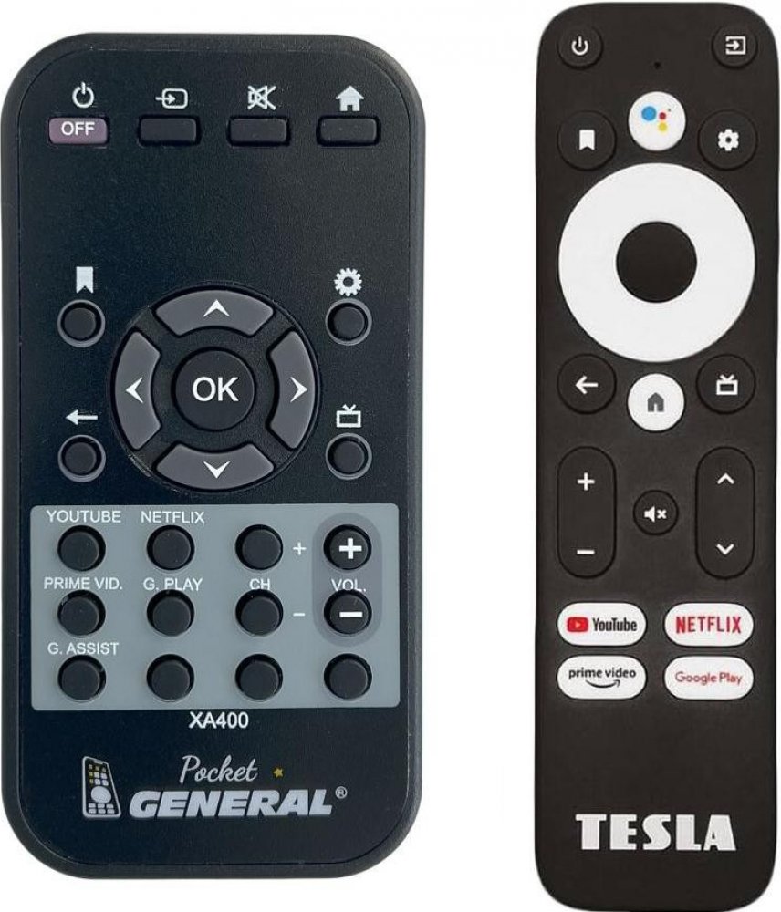 Náhradní rádiový (RF) dálkový ovladač TESLA XA400, XG500.Dálkový ovladač byl vyvinut speciálně na míru pro tyto modely značky TESLA:XA-400, XA400. (Nemusí zde být uvedeny úplně všechny kompatibilní modely. Pokud si nejste jisti, sdělte nám svůj model (použijte online chat, e-mail, telefon), neprodleně zkontrolujeme a ověříme, zda je tento ovladač kompatibilní s Vaším přístrojem. Za poskytnutou informaci ručíme.) HLASOVÉ OVLÁDÁNÍ: ANOJedná se o naprosto stejný dálkový ovladač jako originál. Jediný rozdíl je, že nemá logo TESLA (to je jediný důvod, proč je levnější). Vysoká kvalita materiálu a zpracování, naprosto bezporuchový. Všechny naše dálkové ovladače kontrolujeme a testujeme, proto garantujeme jejich spolehlivost, nadstandardně dlouhý dosah signálu a výbornou citlivost tlačítek.JEDNODUCHÉ ZPROVOZNĚNÍ: Ovladač se spáruje s televizorem úplně stejně jako původní originální ovladač (zmáčknutím a podržením ). Tento ovladač momentálně není skladem, bude naskladněn během 5-10 dnů. Pro bližší informace nás kontaktujte.