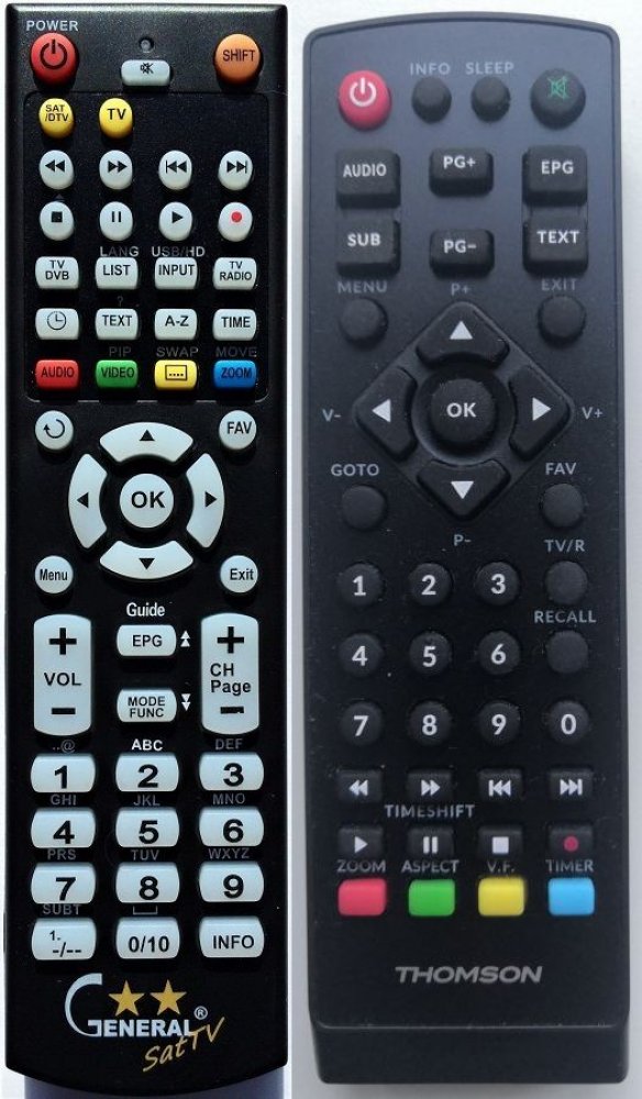 Náhradní dálkový ovladač THOMSON THT-709 (THT709) - 100procent náhrada 1:1 za originální dálkový ovladač. Dálkový ovladač je určen pro tyto modely THOMSON: THT-709, THT709. (Nemusí zde být uvedeny úplně všechny kompatibilní modely. Pokud si nejste jisti, sdělte nám svůj model (použijte online chat, e-mail, telefon), neprodleně zkontrolujeme a ověříme, zda je tento ovladač kompatibilní s Vaším přístrojem. Za poskytnutou informaci ručíme.) Ovladač je dodáván ve verzi značkového dálkového ovladače General SAT/TV (zobrazen vlevo). Garantujeme Vám, že dostanete ovladač, který plně nahradí Váš původní originální ovladač a bude mít naprosto všechny funkce. Není to univerzální ovladač, ale ovladač, který je naprogramován a přímo určen pro modely přístrojů uvedené výše. Není třeba žádné párování, žádné kódy. Obdržíte od nás ovladač, který je připraven k použití - jediné, co musíte udělat, je vložit baterie a ovladač hned funguje. Podívejte se na obrázek ovladače a ujistěte se, že jsou v tabulce všechny funkce jako na původním originálním ovladači. Jedná se o plnohodnotný náhradní dálkový ovladač (není to „univerzál“). Má naprosto všechny funkce přesně jako originální ovladač. Záruční lhůta na ovladač je 2 roky. Dodáván také jednoduchý návod s mapováním funkcí. DOPLŇKOVÁ FUNKCE: Tento dálkový ovladač je možno naprogramovat na 1 další přístroj. Budete moci jedním ovladačem ovládat oba přístroje (např. SAT plus TV nebo SAT plus DVD apod). Pokud nám do komentáře v objednávce napíšete model dalšího přístroje, naprogramujeme Vám ovladač na oba. Za tuto doplňkovou službu bude naúčtován příplatek k ceně ovladače 50 Kč: více informací