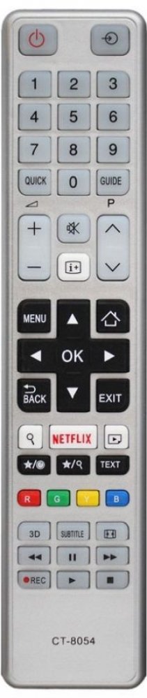 Náhradní dálkový ovladač TOSHIBA CT-8054, RC48120 (CT8054, RC48120). Je určen pro tyto modely TOSHIBA:24W3663DG, 24W3753DG, 28W3763DG, 32D3454DB, 32L3433DG, 32L3441DG, 32L3543DG, 32L3733DG, 32L3763DG, 32L5660EV, 32W3433, 32W3453DN, 32W3454DB, 32W3543DG, 32W3763DG, 40D3453DB, 40L3433, 40L3441, 40L3443, 40L3448, 40L3541DG, 40L4331, 40L5435, 40L5435DG, 40L5441, 40L5443DG, 40L5445, 40L5453DB, 43L3663DG, 43L3763DG, 48L3441, 48L3443, 48L3448, 48L3453R, 48L3663DG, 48L5441, 48L5445, 48L5445DG, 48L5463DN, 48S3653DB, 48U7653DB, 50L3763DG, 55L3663DG, 55L3763DG. (Nemusí zde být uvedeny úplně všechny kompatibilní modely. Pokud si nejste jisti, sdělte nám svůj model (použijte online chat, e-mail, telefon), neprodleně zkontrolujeme a ověříme, zda je tento ovladač kompatibilní s Vaším přístrojem. Za poskytnutou informaci ručíme.) Jedná se o naprosto stejný dálkový ovladač jako originál. Jediný rozdíl je, že nemá logo TOSHIBA (to je jediný důvod, proč je levnější). Vysoká kvalita materiálu a zpracování, naprosto bezporuchový. Všechny naše dálkové ovladače kontrolujeme a testujeme, proto garantujeme jejich spolehlivost, nadstandartně dlouhý dosah signálu a výbornou citlivost tlačítek.Tento dálkový ovladač nemusíte nijak párovat, nevyžaduje žádné nastavování ani kódy. Stačí vložit baterie a funguje se všemi výše uvedenými modely.
