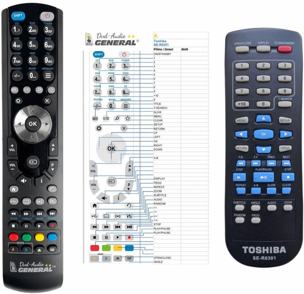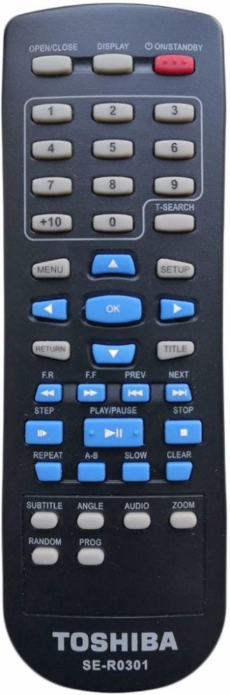 Náhradní dálkový ovladač TOSHIBA SE-R0301 (SER0301) - 100% náhrada 1:1 za originální dálkový ovladač. Dálkový ovladač je určen pro tyto modely :SD-180EKE, SD1010KB. (Nemusí zde být uvedeny úplně všechny kompatibilní modely. Pokud si nejste jisti, sdělte nám svůj model (e-mail, telefon), neprodleně zkontrolujeme a ověříme, zda je tento ovladač kompatibilní s Vaším přístrojem. Za poskytnutou informa