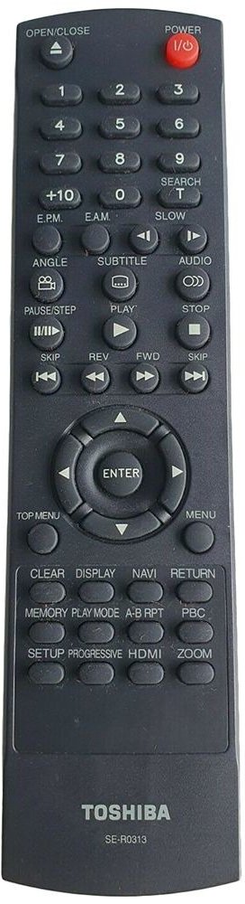 Náhradní dálkový ovladač TOSHIBA SE-R0313 (SER0313) - 100% náhrada 1:1 za originální dálkový ovladač. Dálkový ovladač byl vyvinut speciálně na míru pro tyto modely značky TOSHIBA:SD-200KU, SD-380, SD-4200, SD-6100, SD-6100KU, SD-7200, SDK-980, SDK-980K, SDK-980KU, SDK-990KU. (Nemusí zde být uvedeny úplně všechny kompatibilní modely. Pokud si nejste jisti, sdělte nám svůj model (použijte online cha...