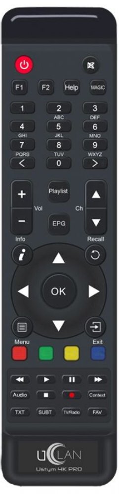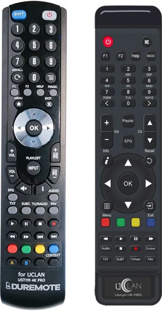 Dálkový ovladač UCLAN Ustym 4K PRO duplikát 1:1 originálního dálkového ovladače. Dokonalá 1:1 kopie navržená a vyrobená naší firmou – má všechny funkce originálního ovladače pro tyto modely značky UCLAN:USTYM 4K PRO. (Nemusí zde být uvedeny úplně všechny kompatibilní modely. Pokud si nejste jisti, sdělte nám svůj model (použijte online chat, e-mail, telefon), neprodleně zkontrolujeme a ověříme, zd...