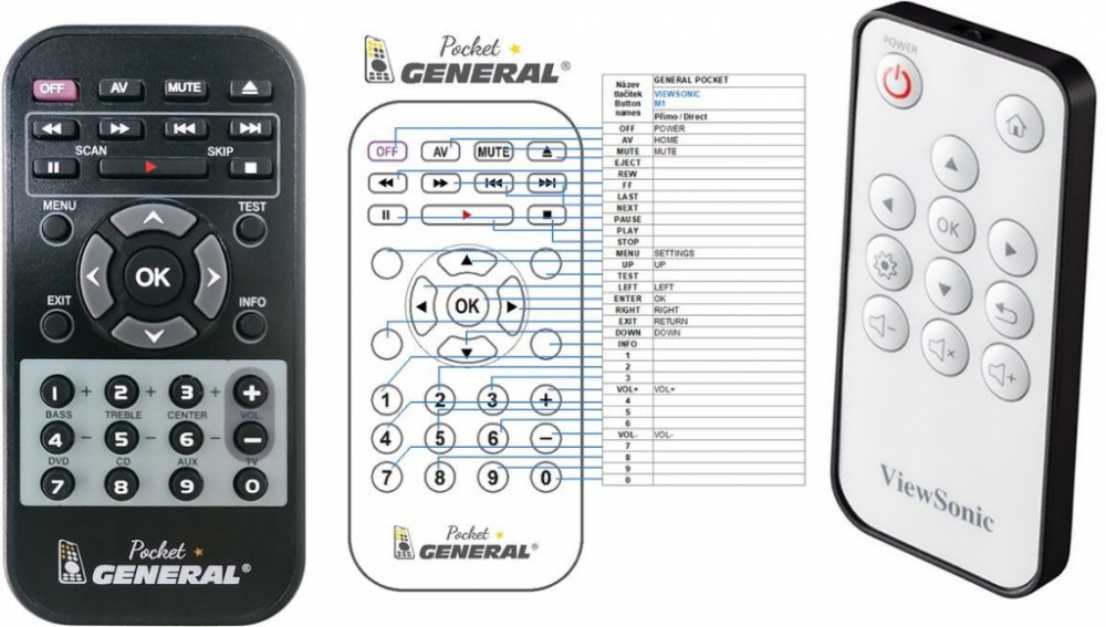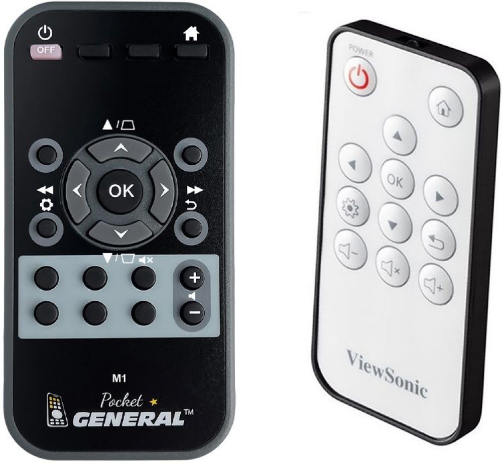 Náhradní dálkový ovladač VIEWSONIC M1 MINI - 100% náhrada 1:1 za originální dálkový ovladač. Dálkový ovladač byl vyvinut speciálně na míru pro tyto modely značky VIEWSONIC:18039, M1 MINI, M1 MINI PLUS, M1 MINI PLUS |, M1-MINI. (Nemusí zde být uvedeny úplně všechny kompatibilní modely. Pokud si nejste jisti, sdělte nám svůj model (použijte online chat, e-mail, telefon), neprodleně zkontrolujeme a ověříme, zda je tento ovladač kompatibilní s Vaším přístrojem. Za poskytnutou informaci ručíme.) Ovladač je dodáván ve verzi značkového dálkového ovladače General POCKET (zobrazen vlevo). Garantujeme Vám, že dostanete ovladač, který plně nahradí Váš původní originální ovladač a bude mít naprosto všechny funkce stejné.Není to univerzální ovladač, ale ovladač, který je naprogramován a přímo určen pro modely přístrojů uvedené výše. Není třeba žádné párování, žádné kódy. Obdržíte od nás ovladač, který je připraven k použití - jediné, co musíte udělat, je vložit baterie a ovladač hned funguje. Podívejte se na obrázek ovladače a ujistěte se, že jsou v tabulce všechny funkce jako na původním originálním ovladači. Jedná se o plnohodnotný náhradní dálkový ovladač (není to „univerzál“). Má naprosto všechny funkce přesně jako originální ovladač. Záruční lhůta na ovladač je 3 roky. Dodáván také jednoduchý návod s mapováním funkcí.