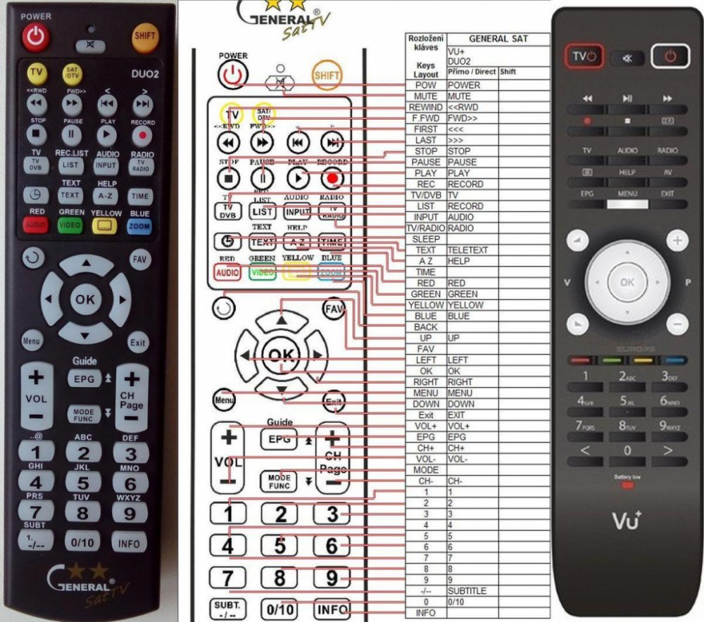 Náhradní dálkový ovladač VU+ DUO2, ZERO. Dálkový ovladač byl vyvinut speciálně na míru pro tyto modely značky VU+:DUO², ZERO. (Nemusí zde být uvedeny úplně všechny kompatibilní modely. Pokud si nejste jisti, sdělte nám svůj model (použijte online chat, e-mail, telefon), neprodleně zkontrolujeme a ověříme, zda je tento ovladač kompatibilní s Vaším přístrojem. Za poskytnutou informaci ručíme.) Jak z...