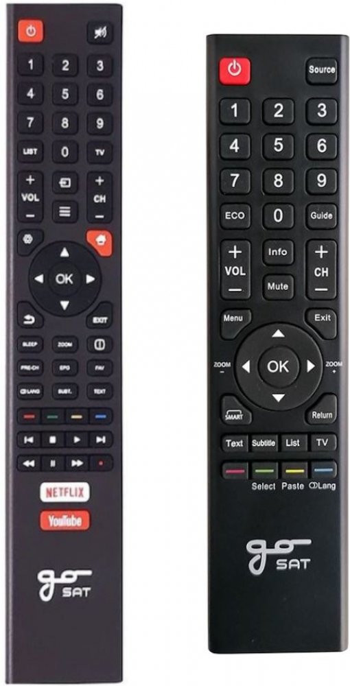 Značkový originální dálkový ovladač GOSAT GS3210, GS3260, GS4360, GS5560. Byl nahrazen kompatibilním originálním dálkovým ovladačem GS3260, GS4360, GS5060, GS5560 SMART (zobrazen vlevo).Jedná se o ORIGINÁLNÍ dálkové ovladání, proto nevyžaduje žádné párování, ani nutné kódy. Stačí vložit baterie a funguje se všemi kompatibilními modely.