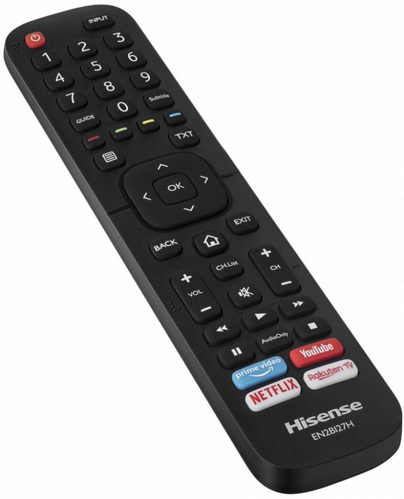 Hisense originální dálkový ovladač. Originální dálkový ovladač Hisense 58A7100F je vyroben z kvalitního černého plastu v hezkém tvaru a nabízí dlouhou vydrž baterie. Ovladač má jednoduché rozložení tlačítek pro maximální pohodlí při používání a všechny standardní funkce, jako je například Netflix, PrimeVideo, Rakuten TV, YouTube a další.