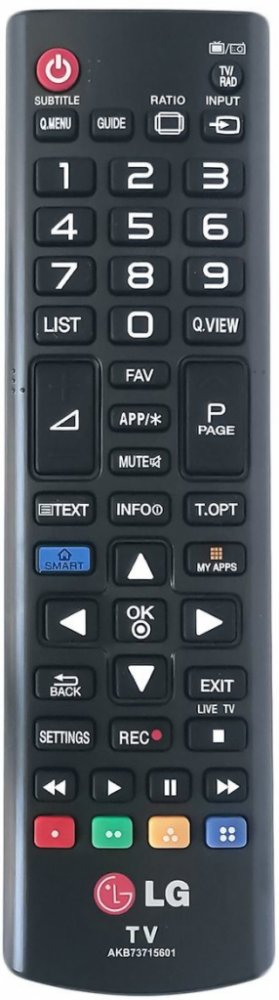 Značkový originální dálkový ovladač LG AKB73715601. Je určen pro tyto modely LG:24MS53, 24MS73, 27MS53, 29LN470, 32LA660, 32LN570, 32LN5707, 32LN570R, 32LN575, 32LN5758, 32LN575S, 32LN578, 32LN578V, 32LN6138, 37LA790, 39LN575, 39LN575S, 39LN578, 40UF695V-ZB, 42KA5708, 42LA570, 42LA660, 42LA667, 42LA669, 42LA690, 42LA691, 42LA691S, 42LA741, 42LA790, 42LA860, 42LA8609, 42LA868, 42LH662, 42LN570S, 42LN575, 42LN5758, 42LN575S, 42LN578, 42LN578V, 42LN613, 42LN6138, 42LN613S, 42LN655, 47LA660, 47LA662, 47LA669, 47LA690, 47LA691, 47LA710, 47LA741, 47LA860, 47LA868, 47LB582V, 47LN570, 47LN5708, 47LN575, 47LN5758, 47LN575S, 47LN578, 47LN613, 47LN6138, 47LN613S, 50LA660, 50LN570, 50LN5708, 50LN575, 50LN5758, 50LN575S, 50PH670, 55AE880, 55EA870, 55EA970, 55EA975, 55EA980, 55LA660, 55LA690V, 55LA860, 55LA868, 55LA960, 55LA965, 55LA970, 55LN575, 55LN5758, 58UF8307, 60LA740, 60LA741, 60LA860, 60LN575, 60LN5758, 60LN575S, 60PH670, 60UF695V, 65LA965, 65LA970, 84LA980, 84LM960, LA660V, LA690V, LA740V, LA790W, LA860W. (Nemusí zde být uvedeny úplně všechny kompatibilní modely. Pokud si nejste jisti, sdělte nám svůj model (použijte online chat, e-mail, telefon), neprodleně zkontrolujeme a ověříme, zda je tento ovladač kompatibilní s Vaším přístrojem. Za poskytnutou informaci ručíme.) Plně nahrazuje také tyto dálkové ovladače: AKB73715634?Dálkový ovladač je originální dálkový ovladač od výrobce LG✔Jedná se o ORIGINÁLNÍ dálkové ovladání, proto nevyžaduje žádné párování, nastavování ani žádné kódy. Stačí vložit baterie a funguje se všemi výše uvedenými modely.